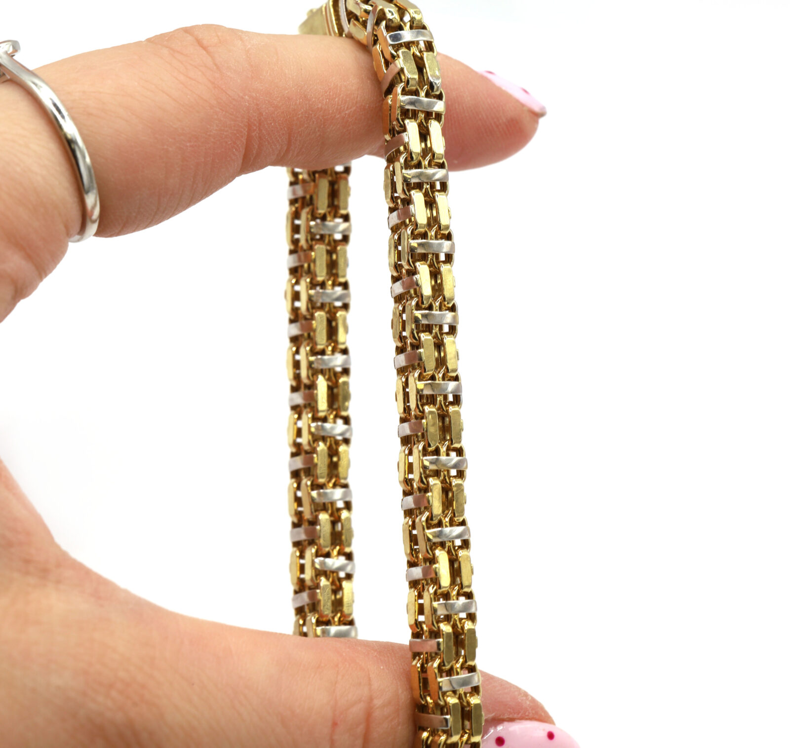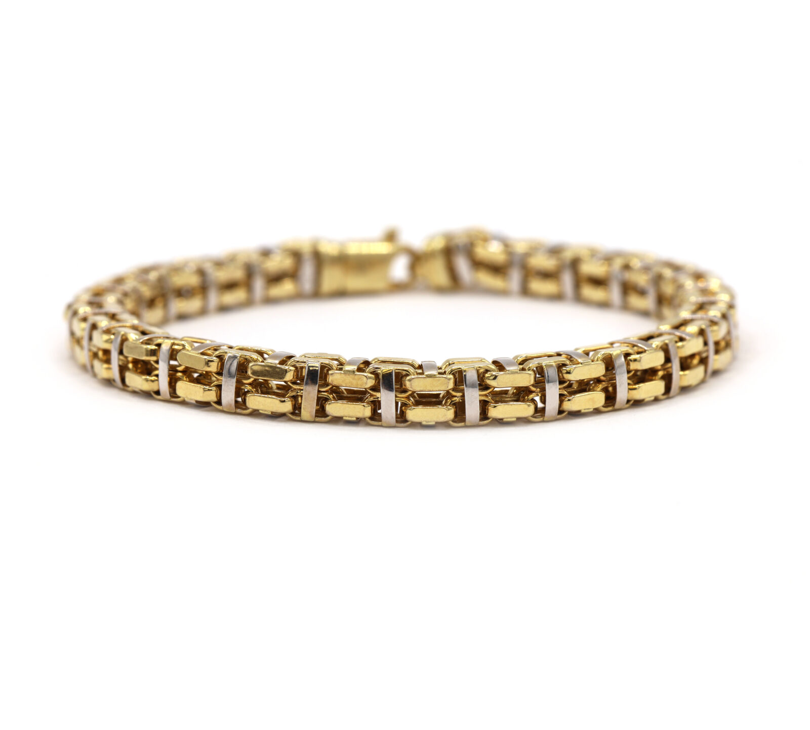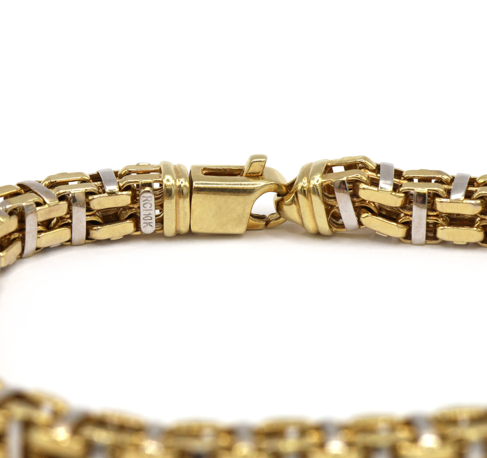 Material: 10k Yellow and White Gold Length: 8.5 Inches Width: 6mm Weight: 15.6 Grams