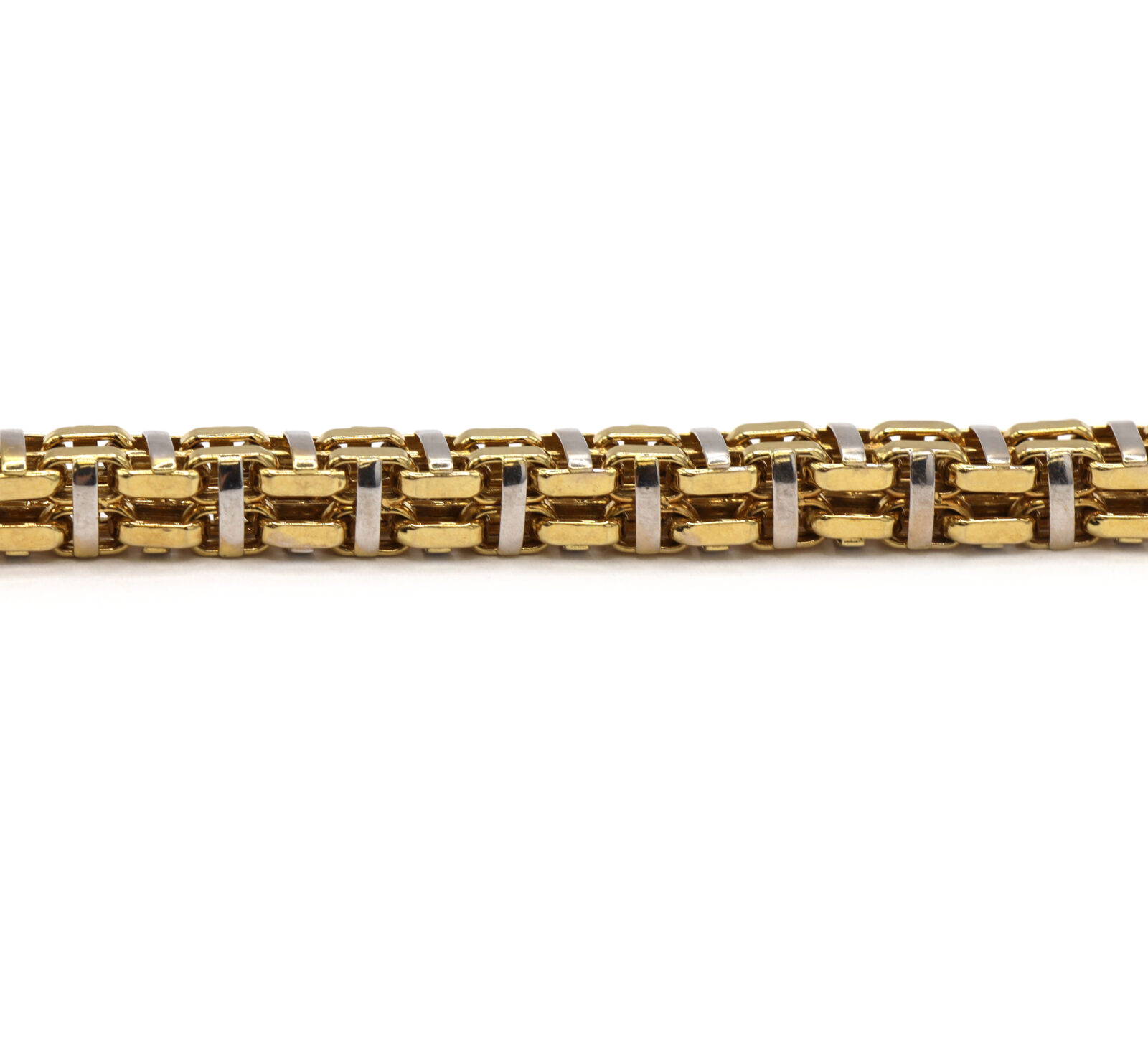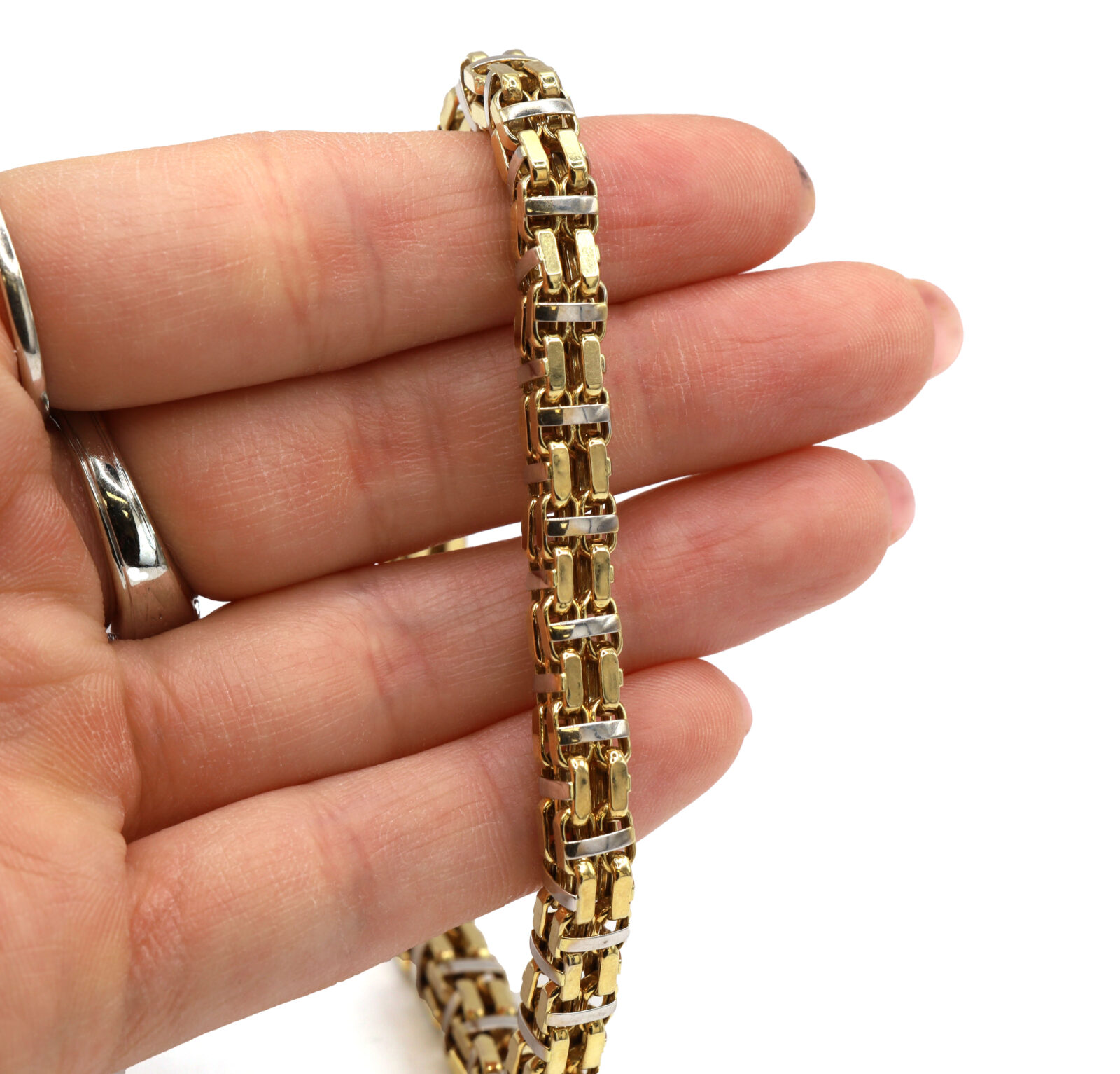 Unique Link Checker Two Tone 10K Yellow White Gold Chain Men’s Unisex Bracelet