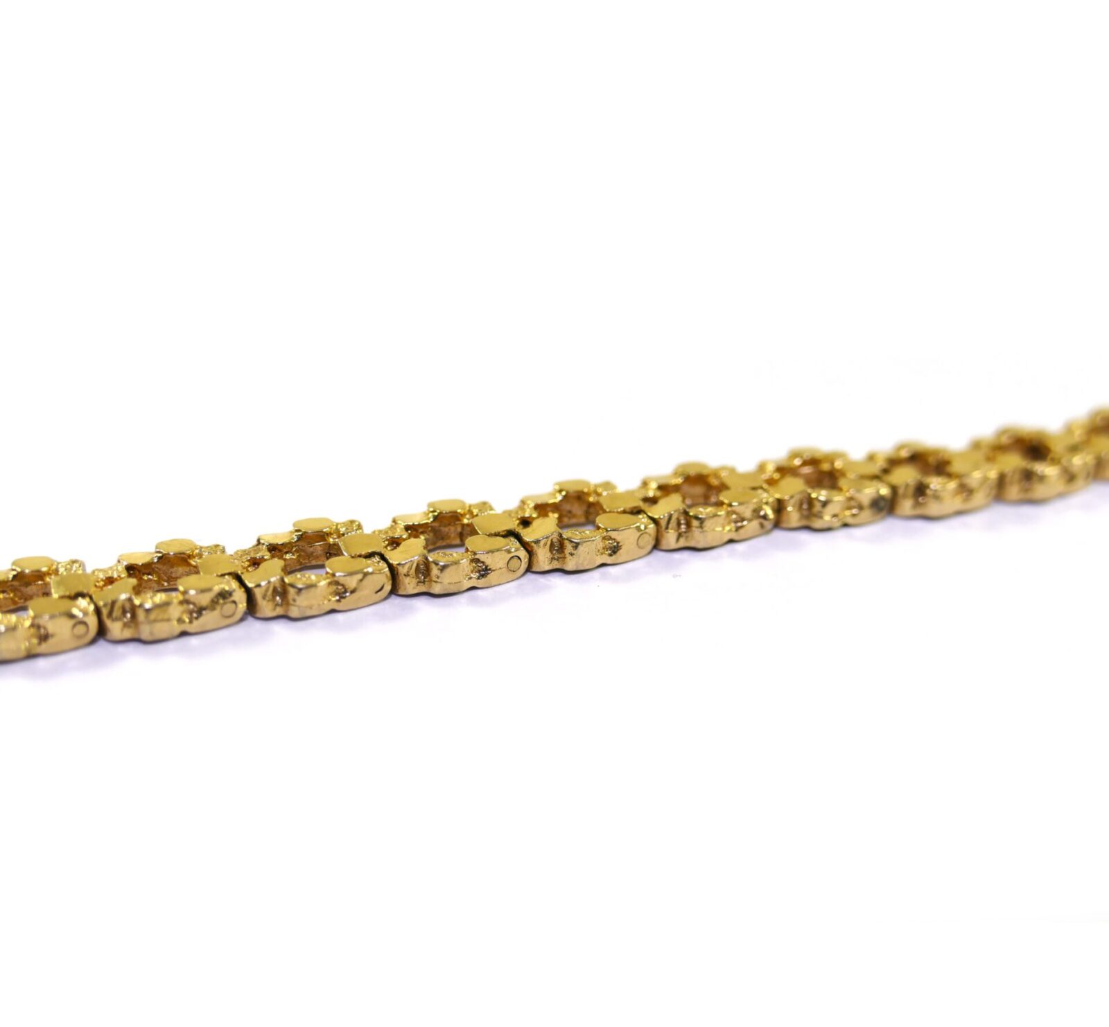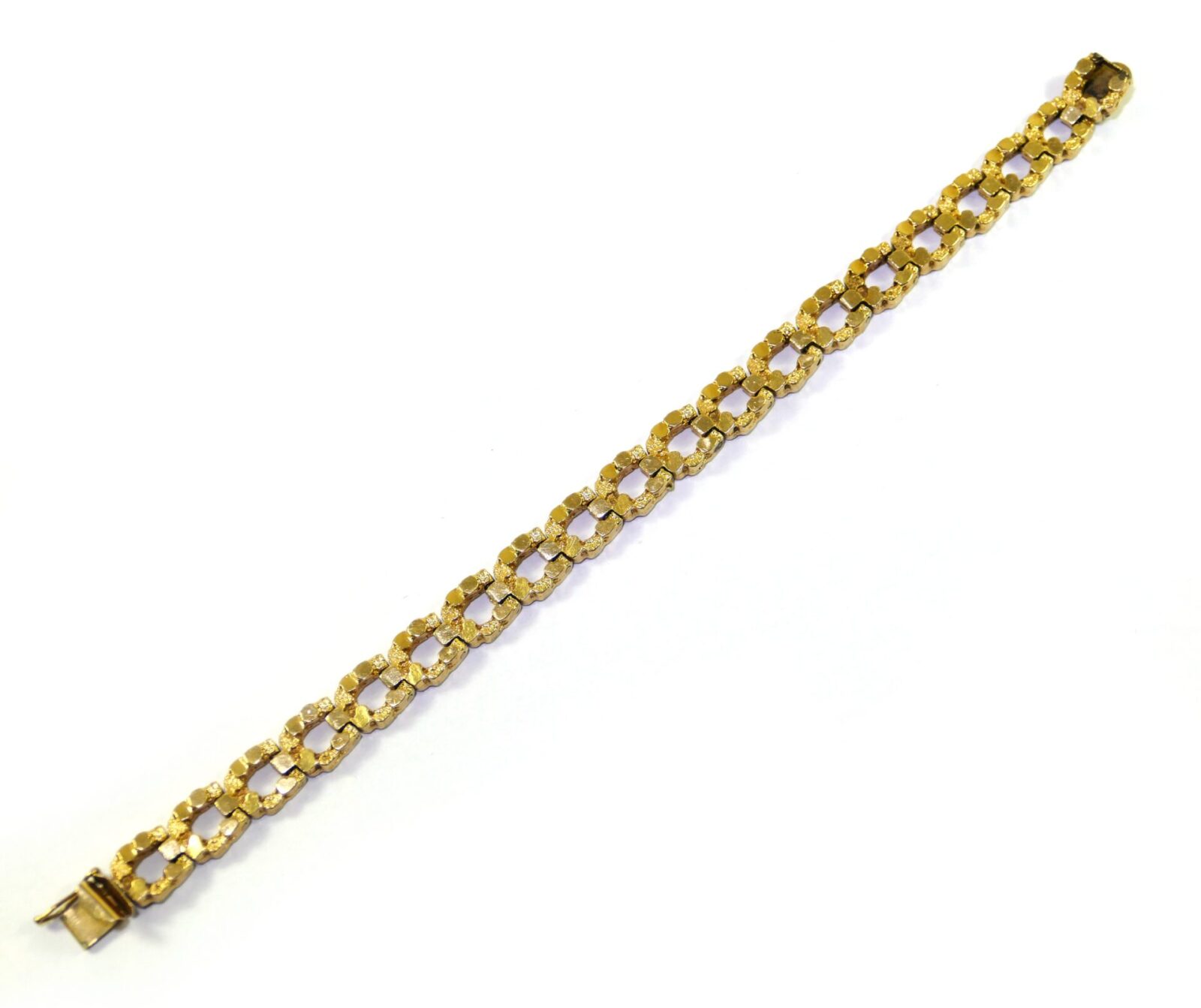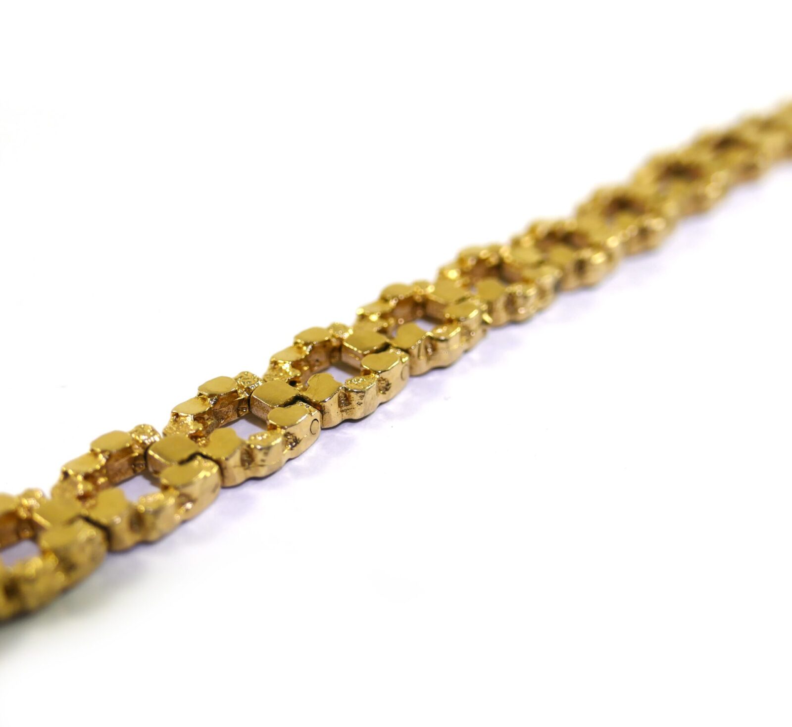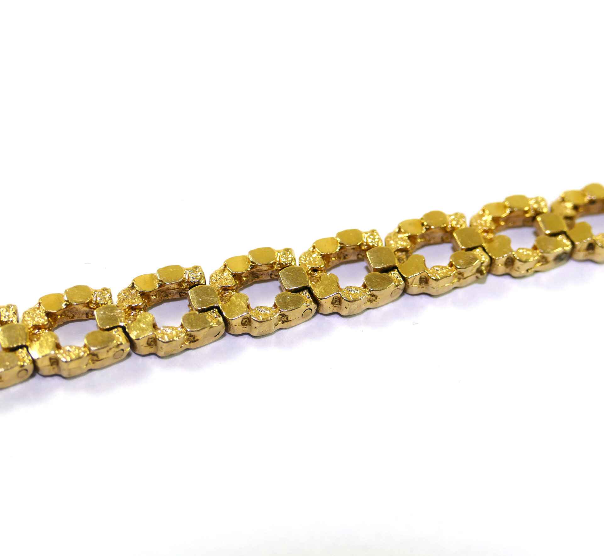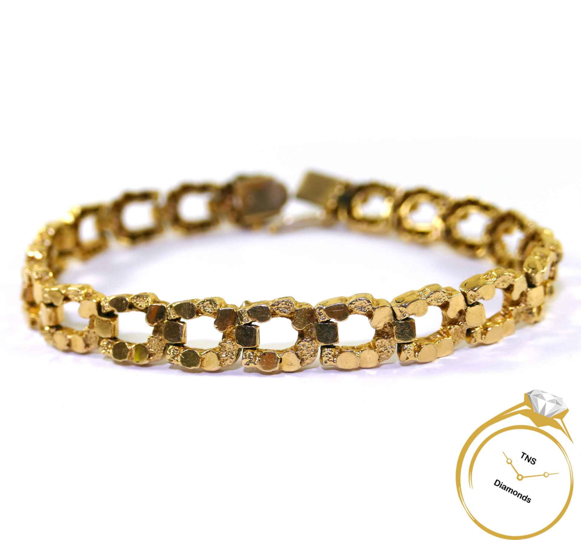 this gold nugget bracelet is made up of complete 14k yellow gold, and detailed beautifully.