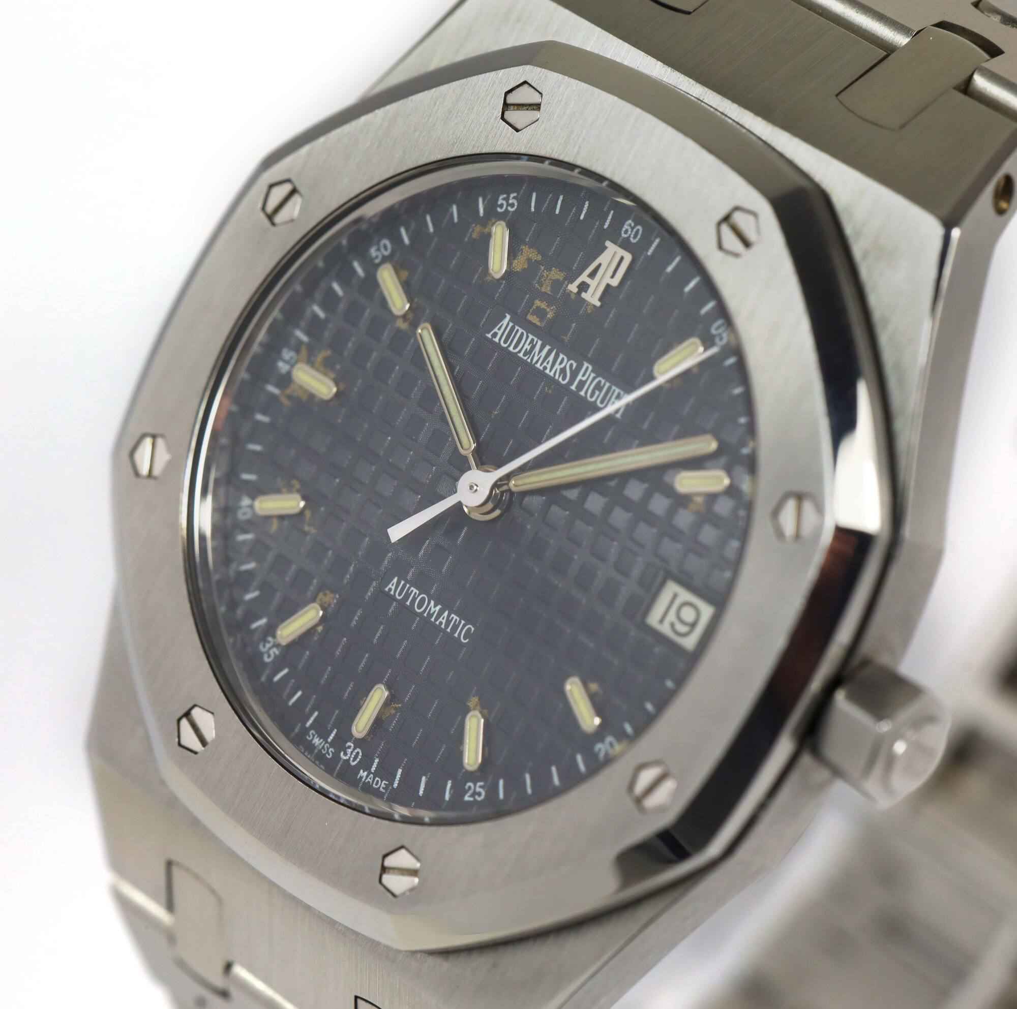 this audemars piguet is unpolished and in amazing condition for the age of the watch, the dial shows some natural fading that occurred over time. This watch comes with its travel box, hang tang, and booklet as shown in the pictures attached. This ap is in stock and available to ship immediately!