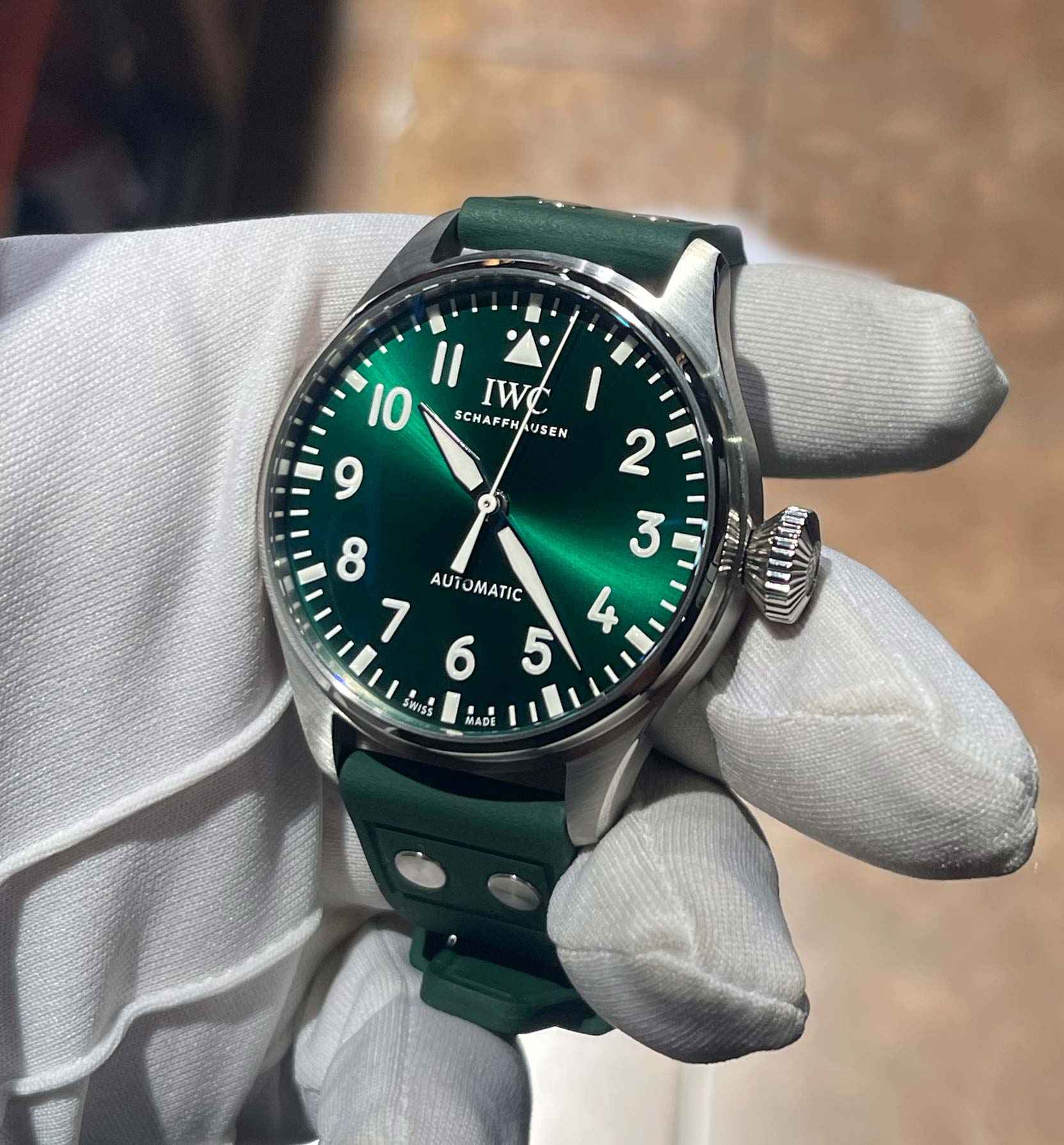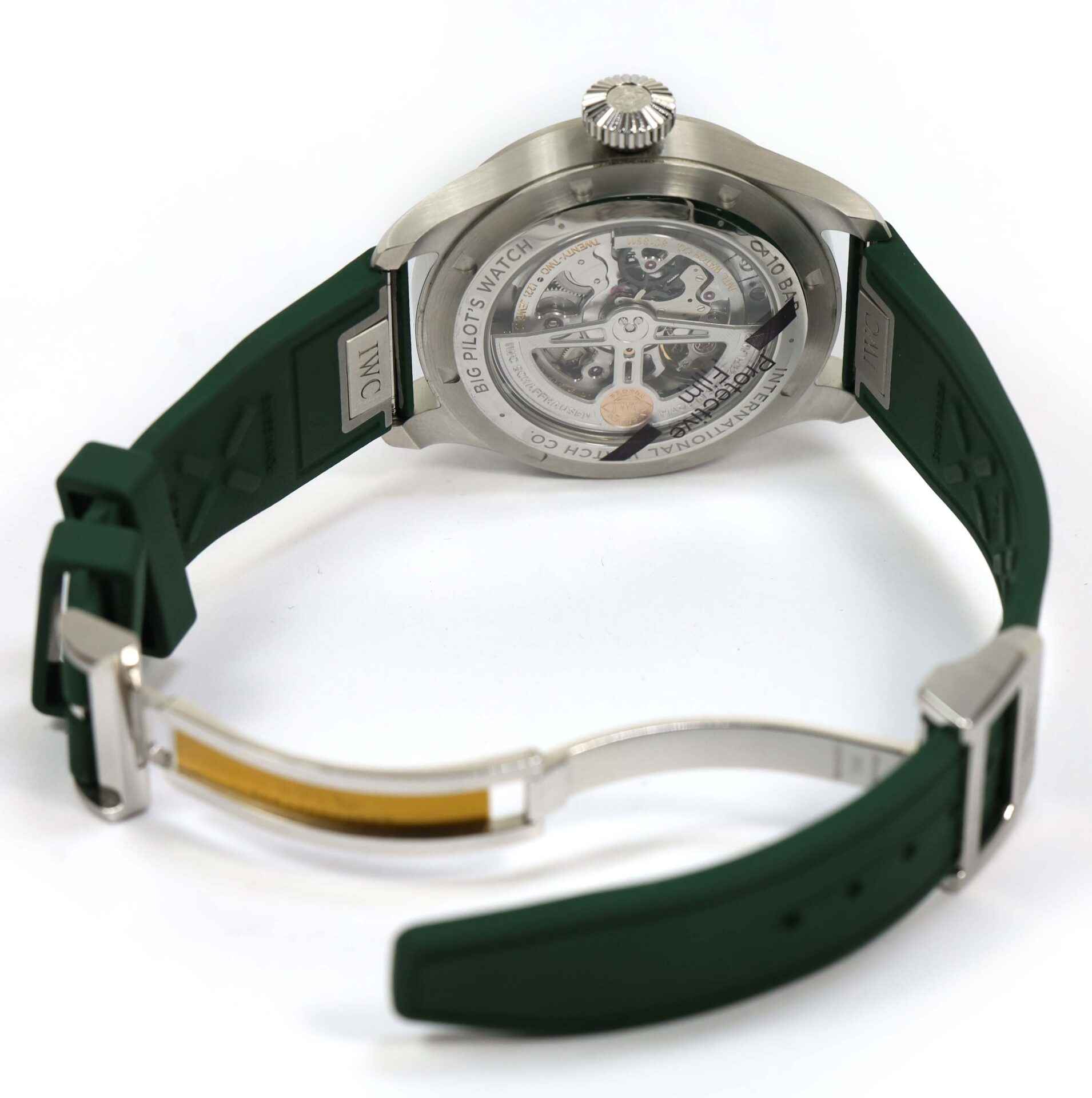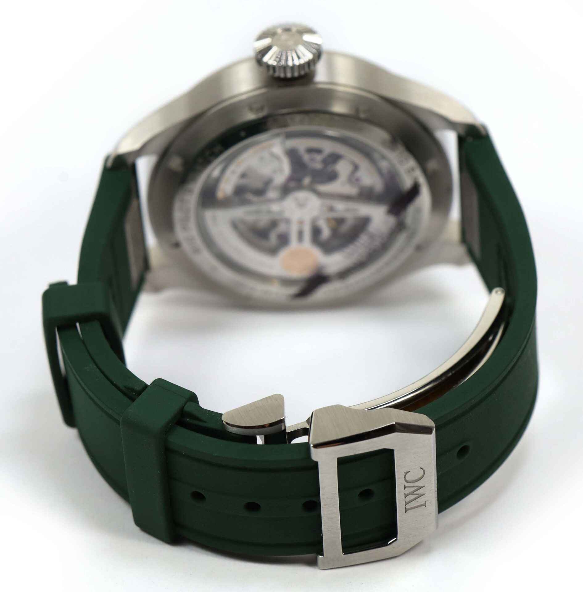 Read Morethis iwc watch is unworn and comes with its box , papers, iwc microfiber cloth, and warranty card dated october 7th, 2022. This watch features a stainless steel case surrounding a green sunburst dial with luminescence, and comes on a green rubber strap as shown in the photos attached.