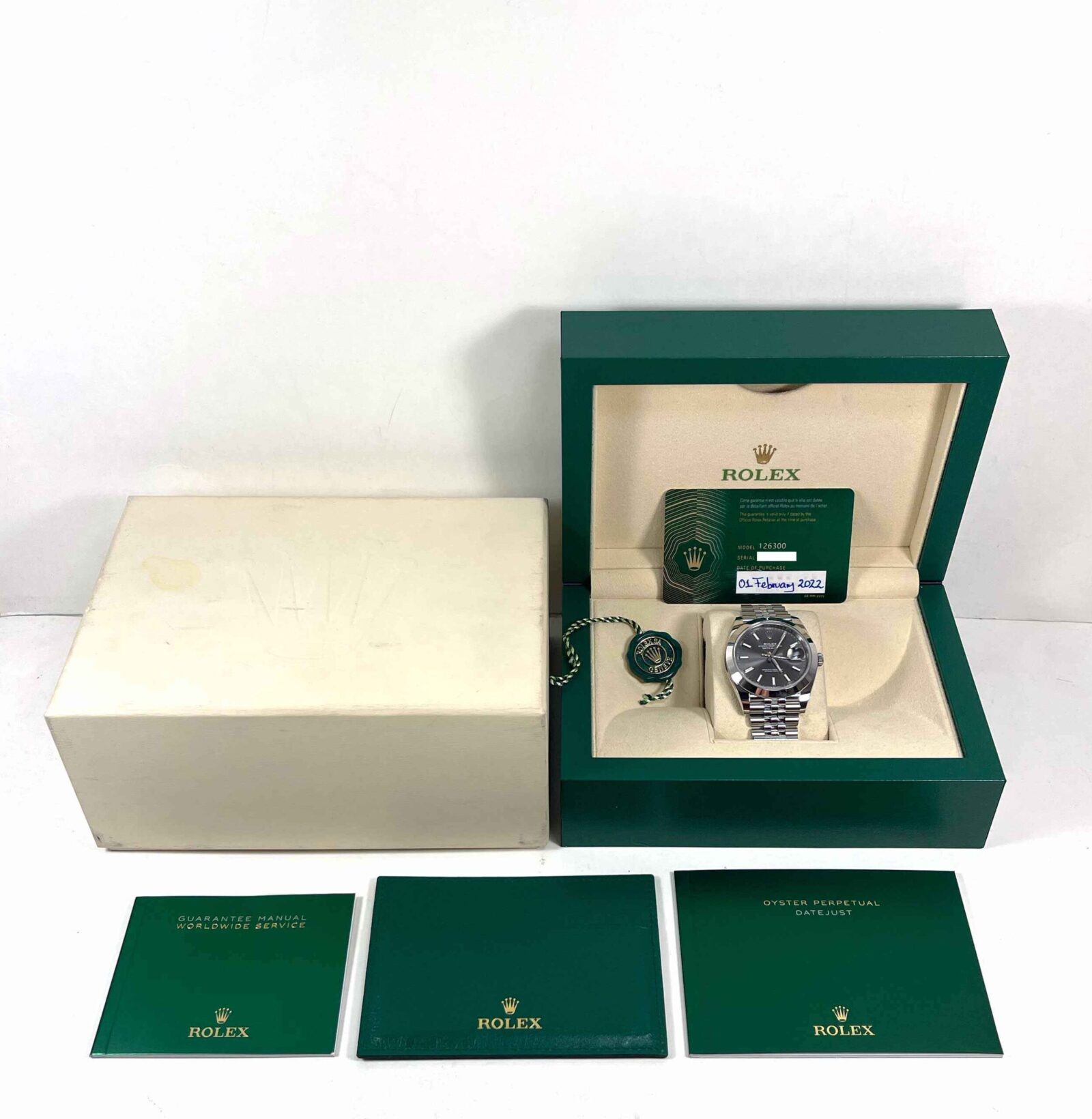 this rolex is unworn and comes with its box, papers, hang tag, and warranty card dated february 1st, 2022. This watch is in stock and available to ship immediately!