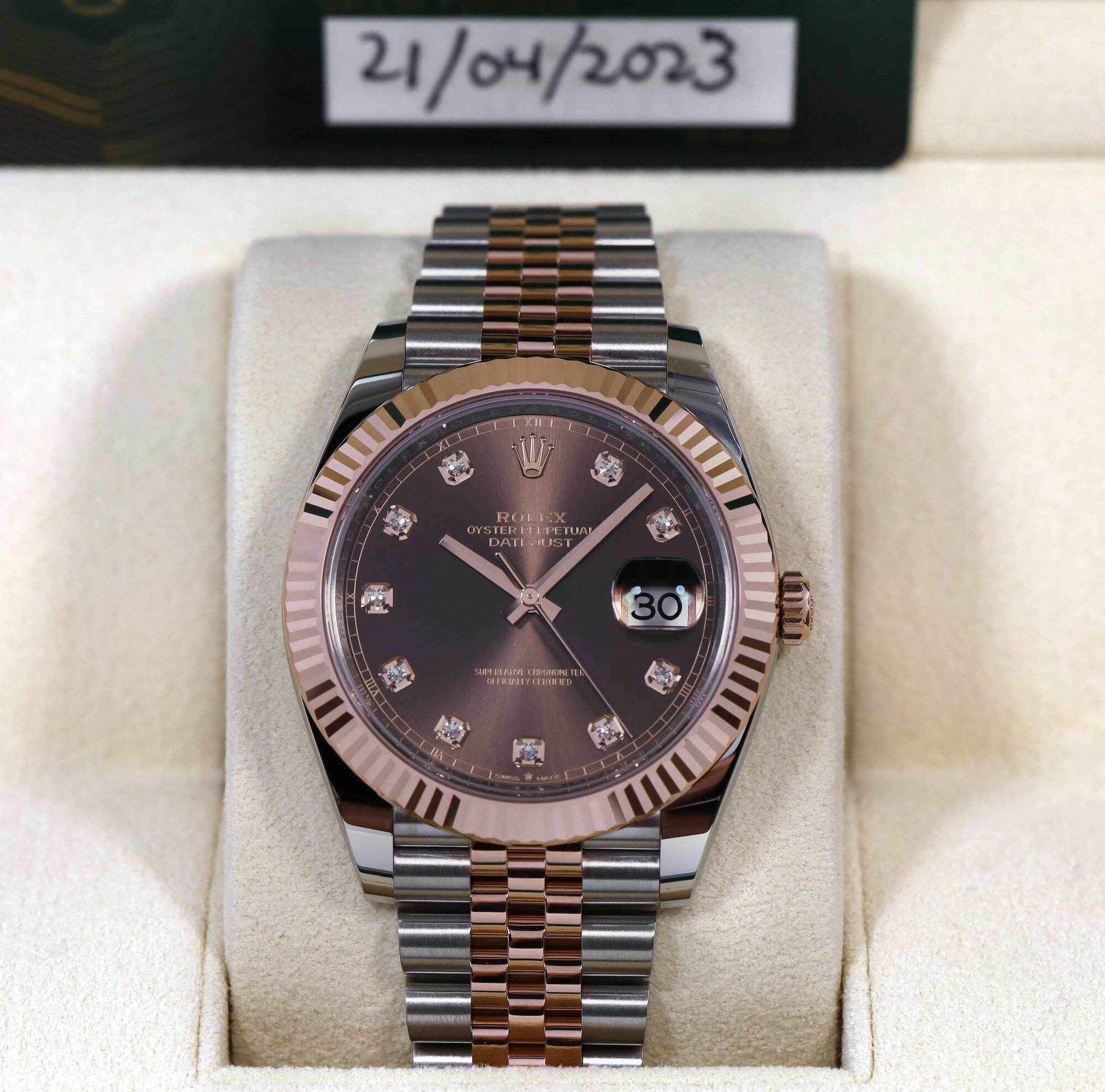 THIS ROLEX IS UNWORN AND COMES WITH ITS BOX, BOOKLETS, BOTH HANG TAGS, AND WARRANTY CARD DATED APRIL 21ST, 2023 AS SHOWN IN THE PICTURES ATTACHED. THIS WATCH IS IN STOCK AND AVAILABLE TO SHIP IMMEDIATELY!