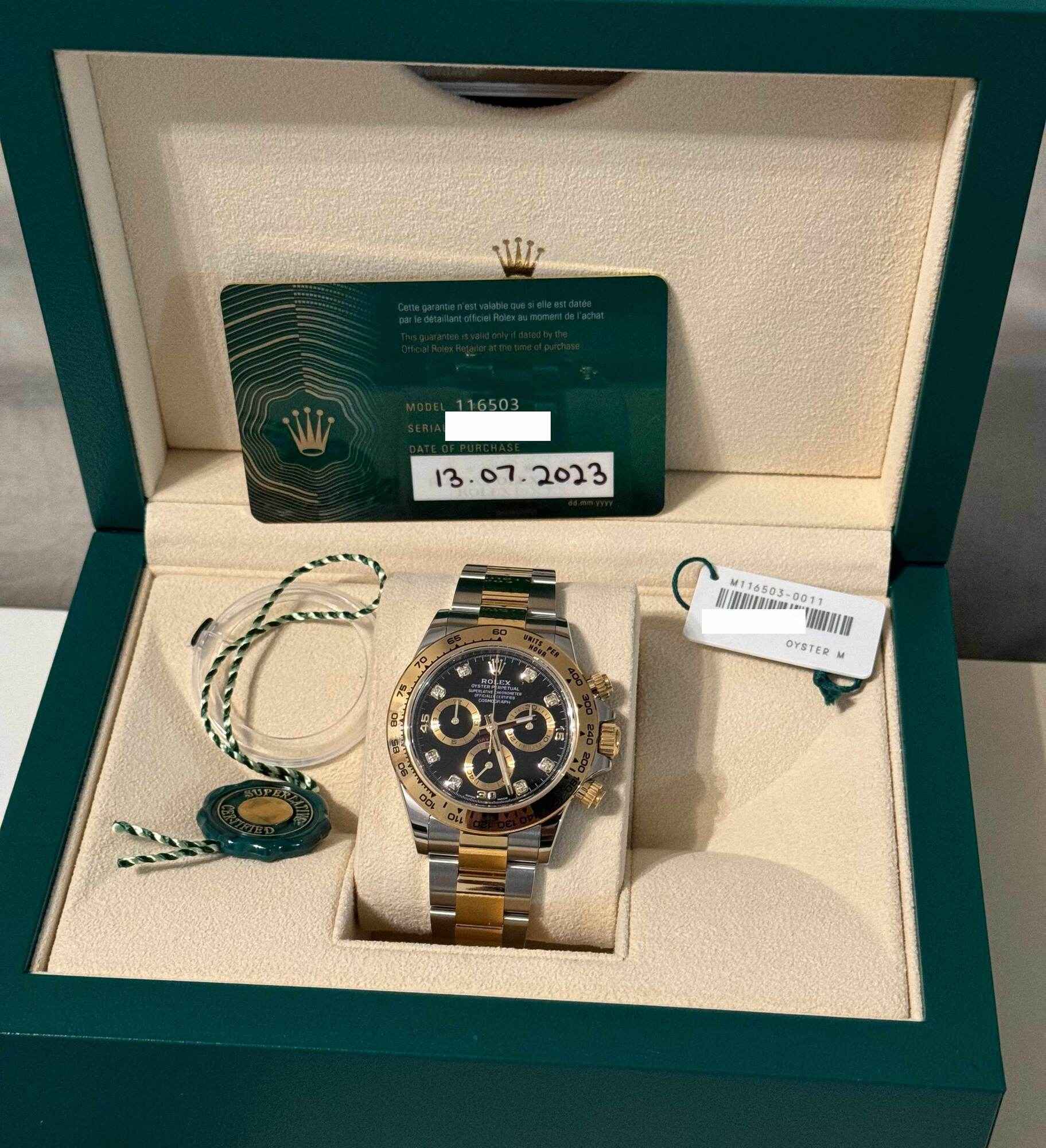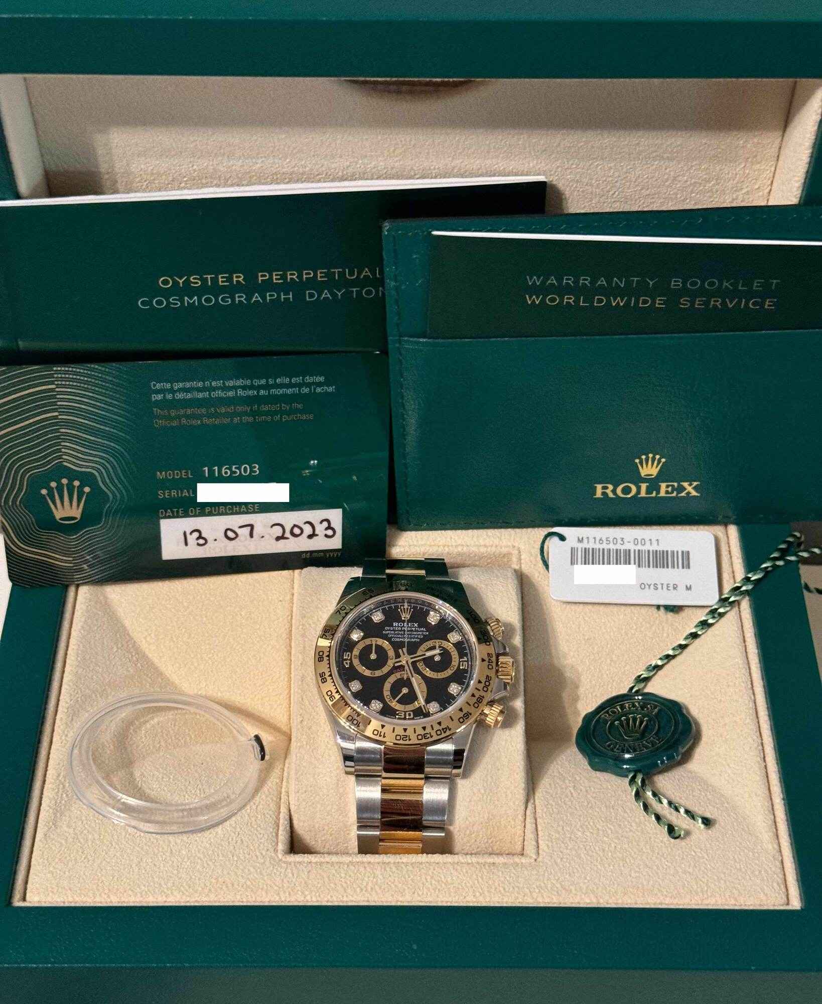 this rolex is unworn and comes with its box, booklets, hang tags, bezel protector, and warranty card dated july 13th, 2023 as shown in the pictures attached. This watch is in stock and available to ship immediately!