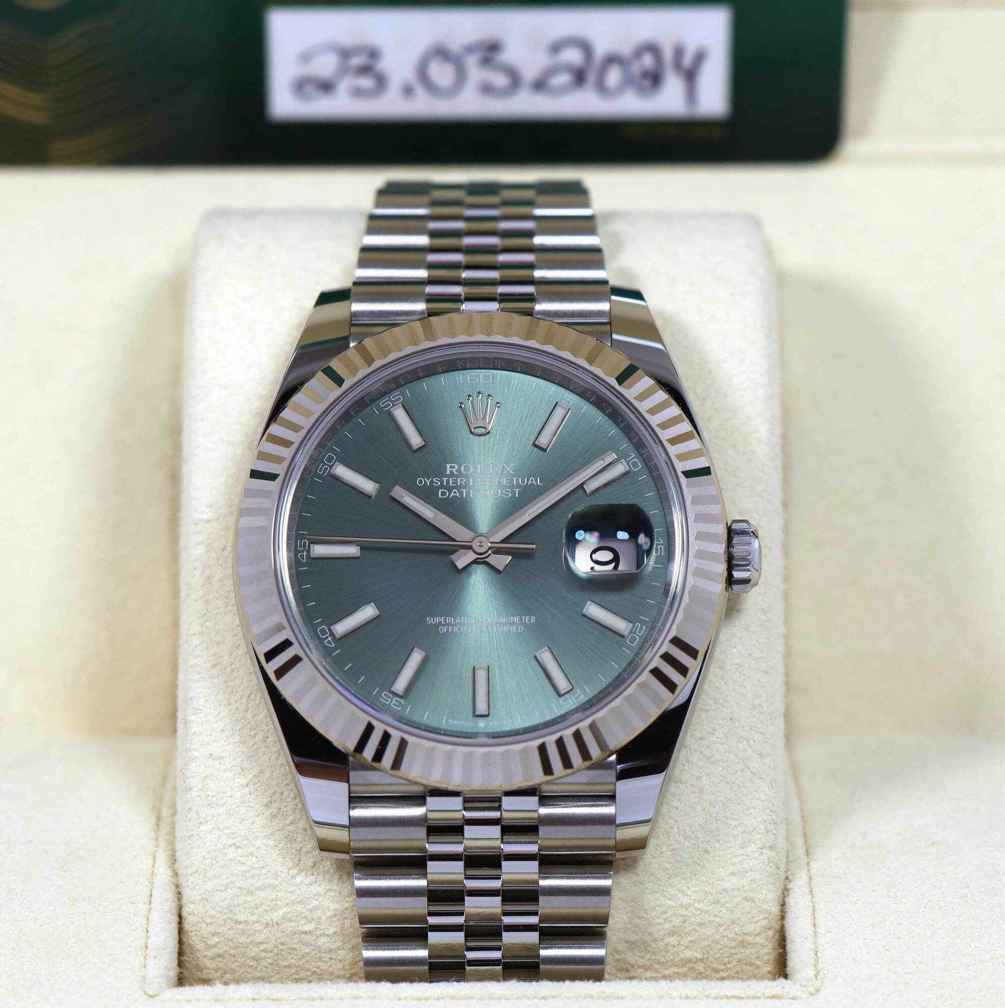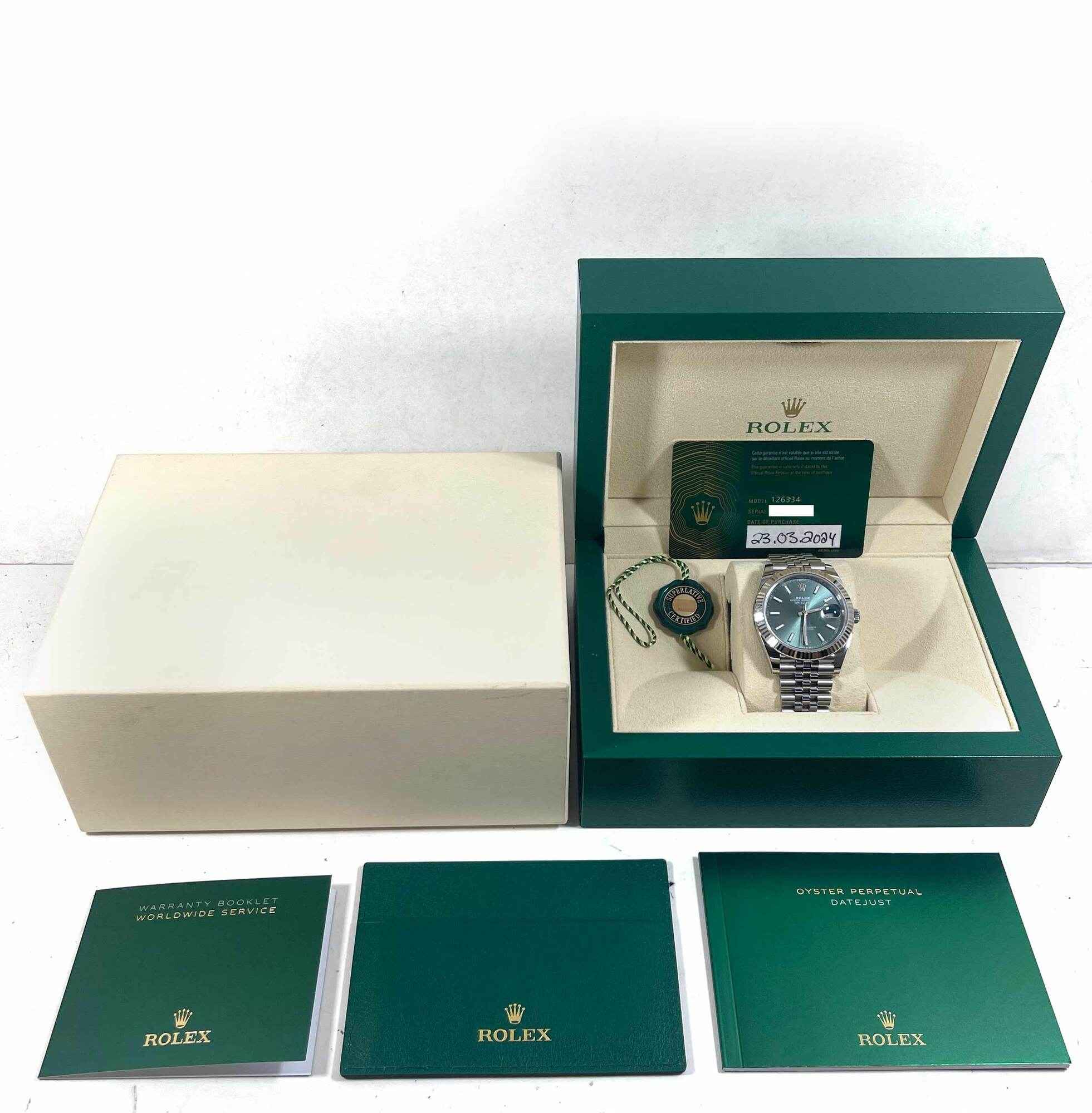 this rolex is unworn and comes with its box, booklets, green hang tag, and warranty card dated march 23rd, 2024 as shown in the pictures attached. This watch is in stock and available to ship immediately!