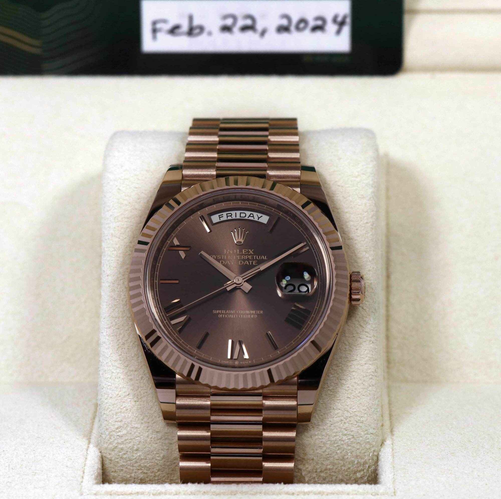 THIS ROLEX IS UNWORN WITH THE GREEN CASEBACK STICKER STILL ATTACHED AND COMES WITH ITS BOX, BOOKLETS, BOTH HANG TAGS, AND WARRANTY CARD DATED FEBRUARY 22ND, 2024 AS SHOWN IN THE PICTURES. THIS WATCH IS IN STOCK AND AVAILABLE TO SHIP IMMEDIATELY!