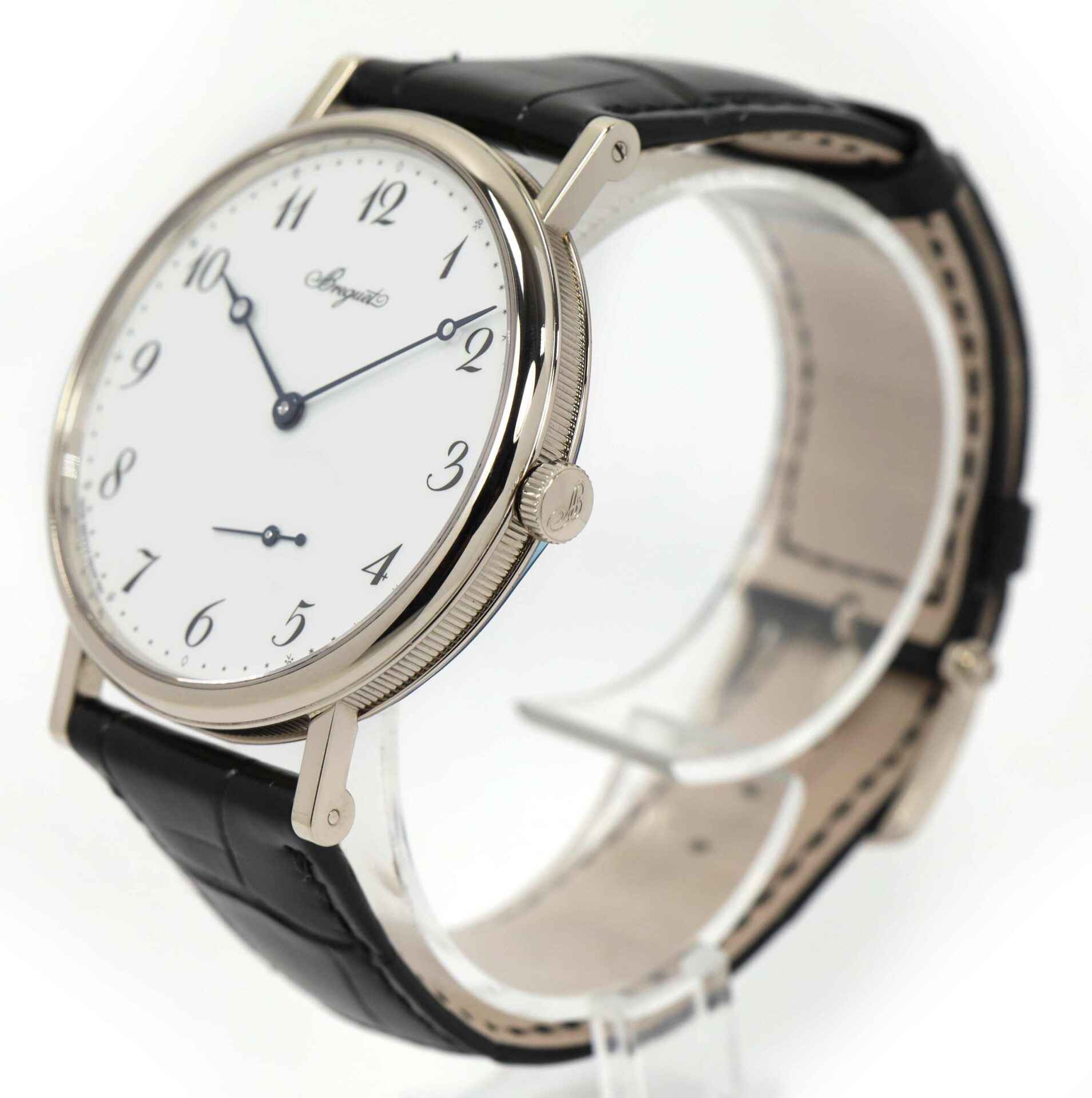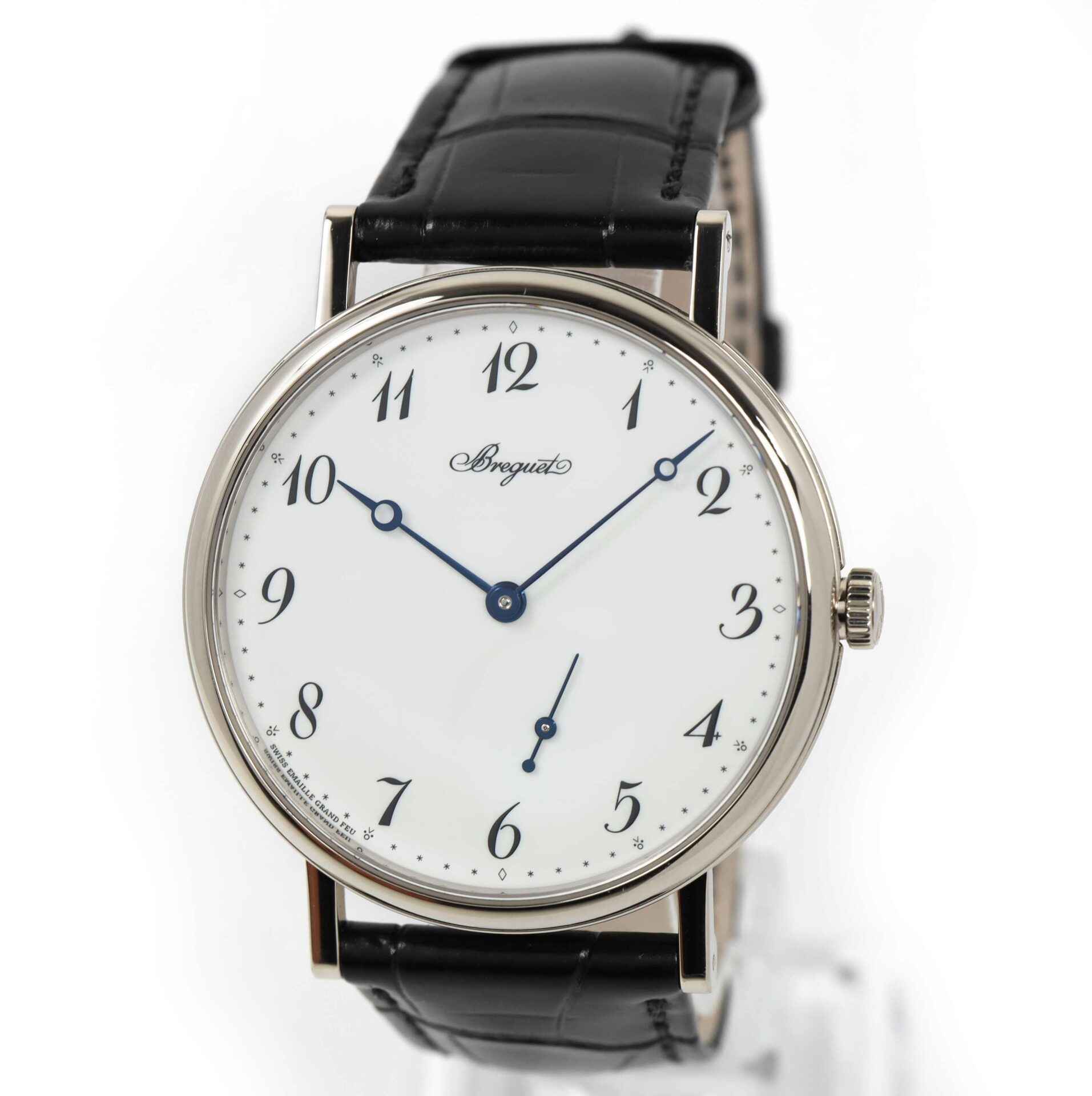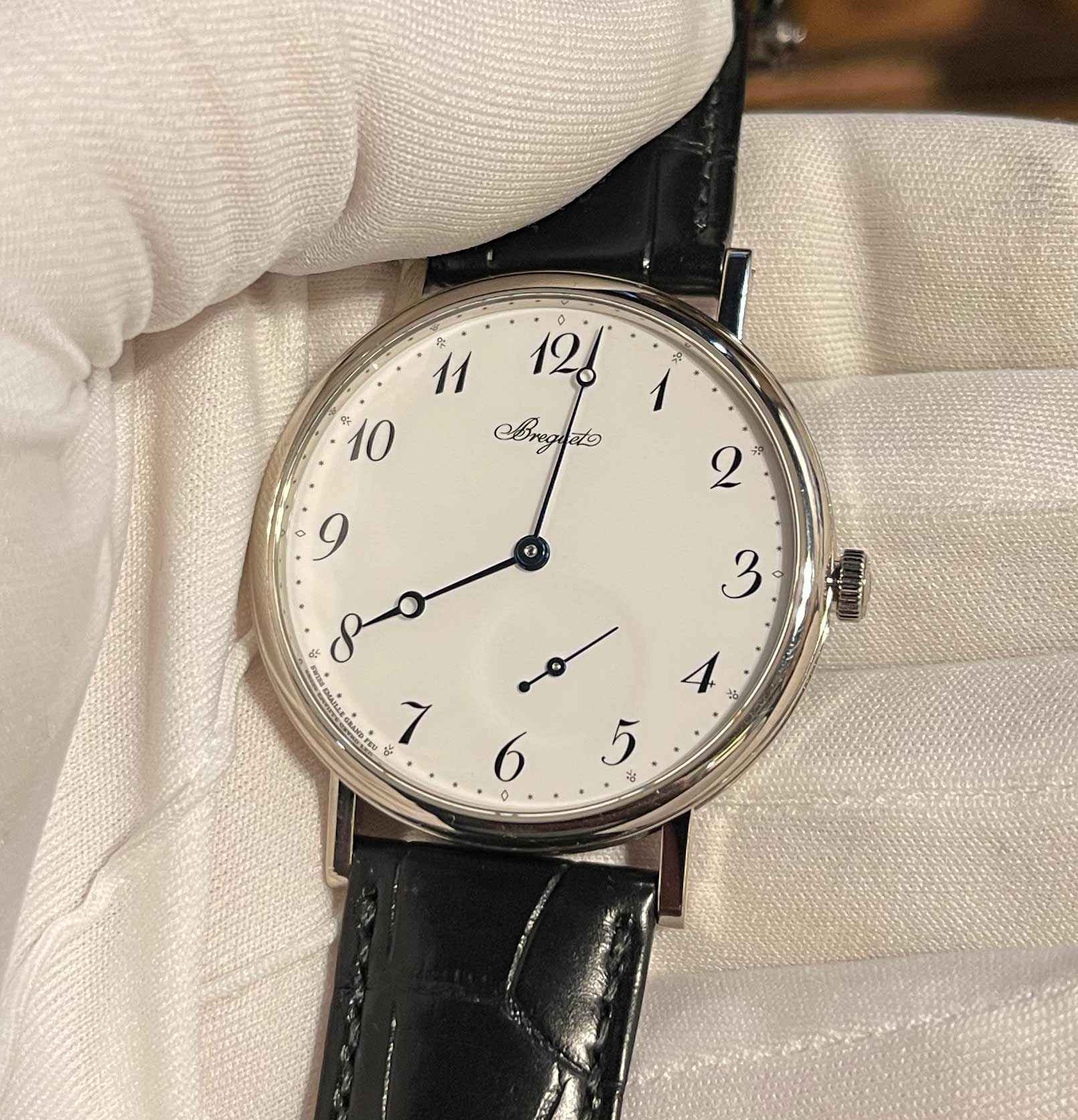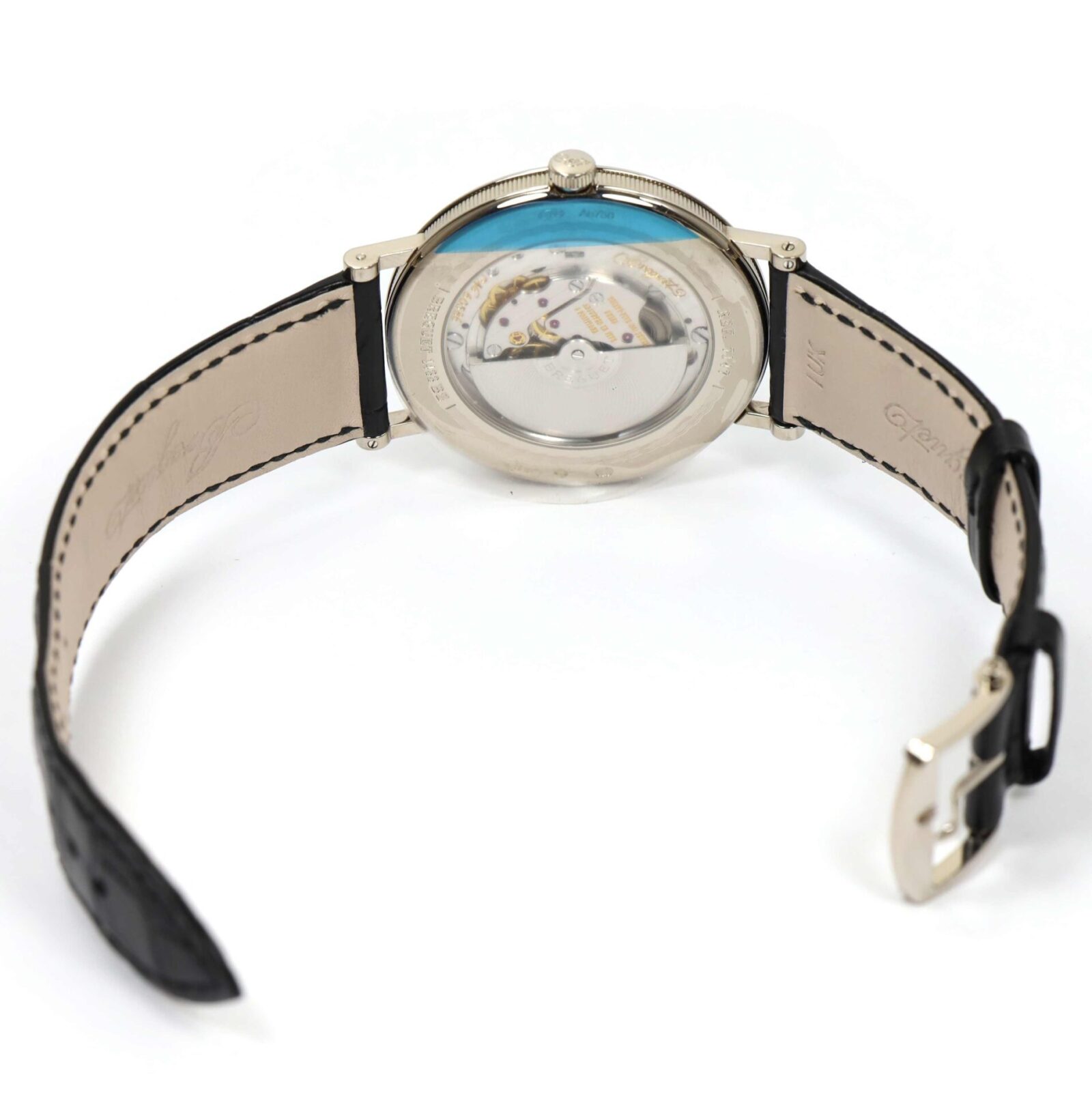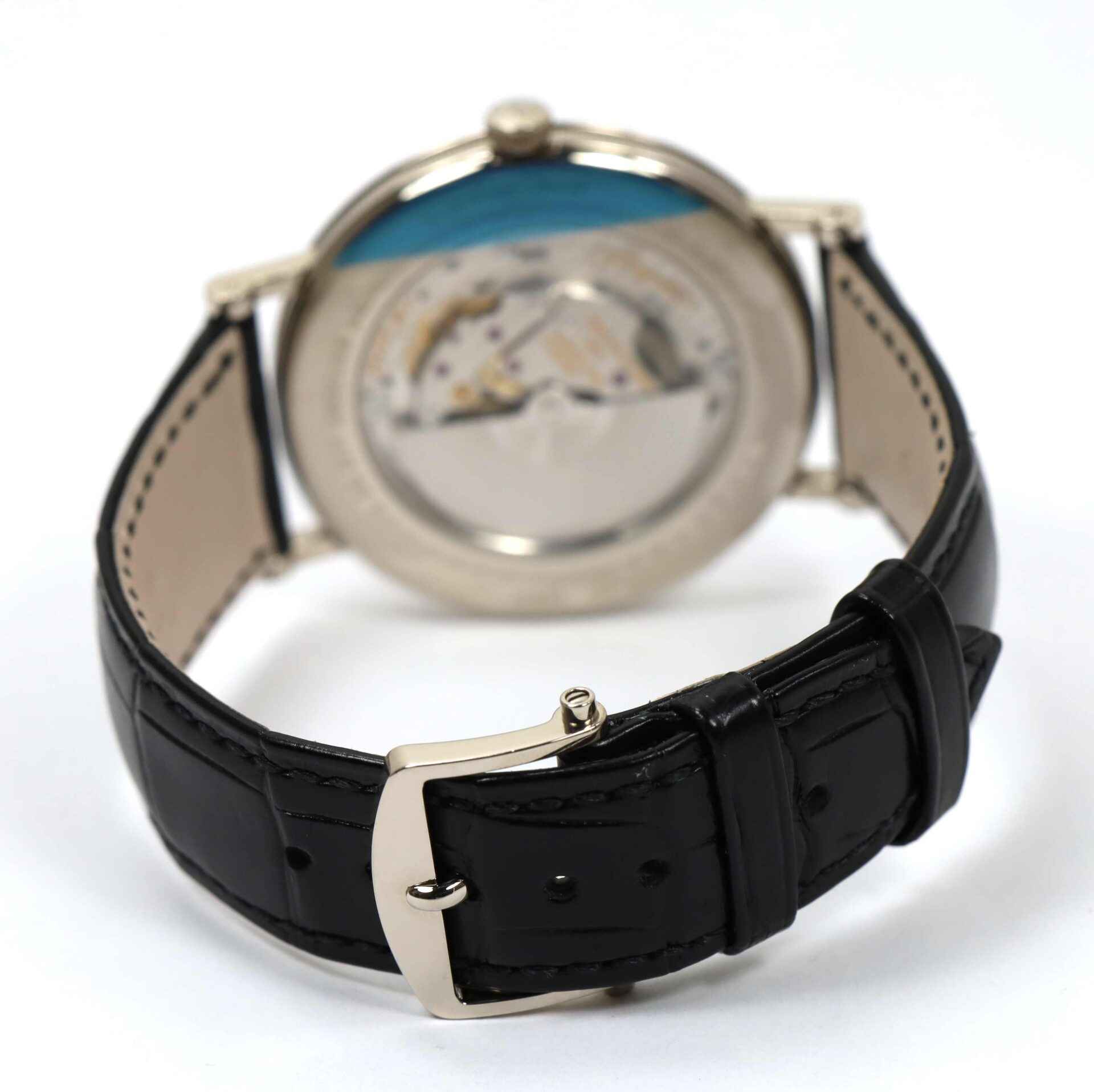 This Breguet is new with the sticker on the caseback as shown in the photos attached. This watch comes as watch only and features a white gold case surrounding an enamel dial with blue Breguet-style hands and comes on a b...