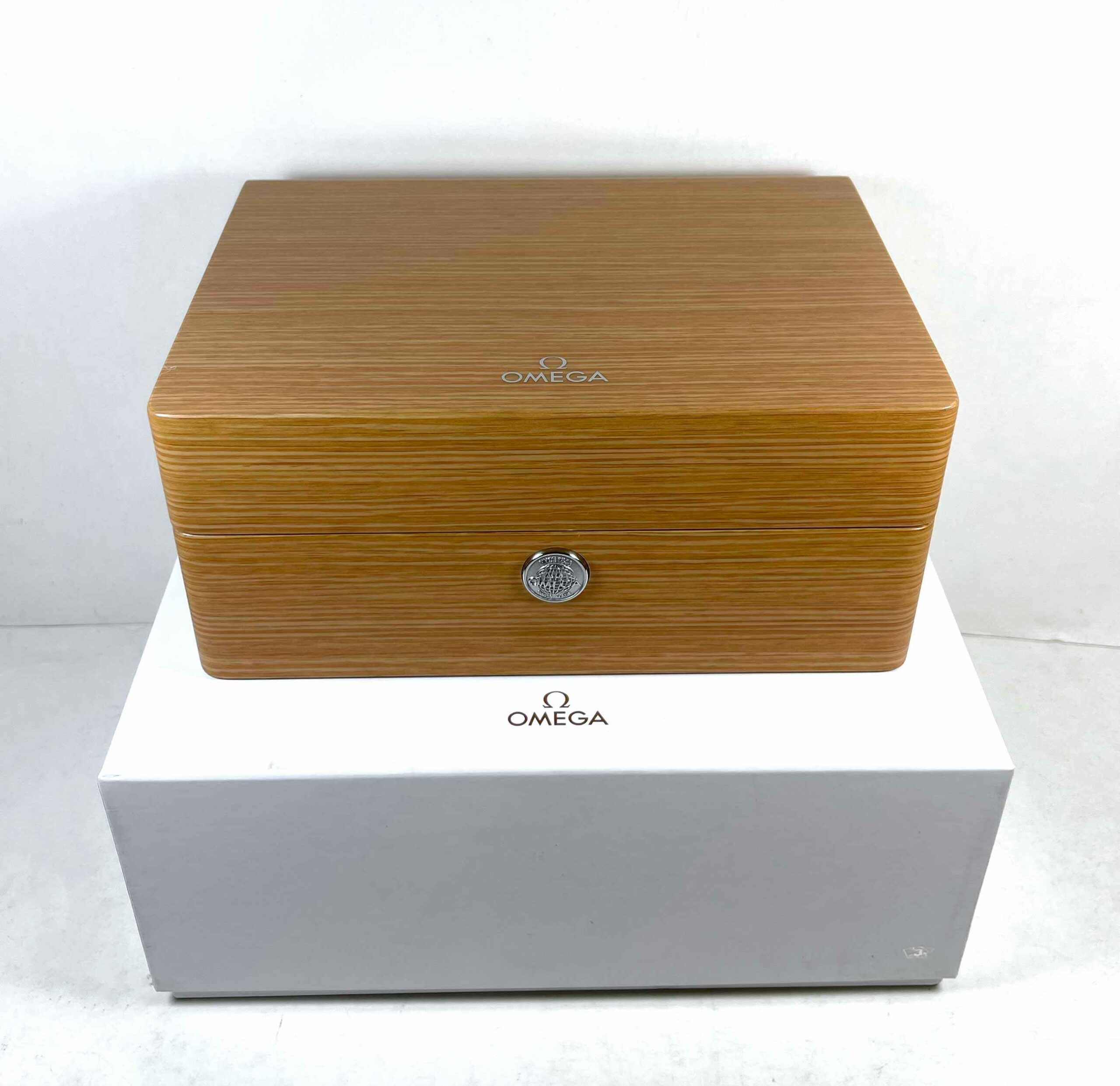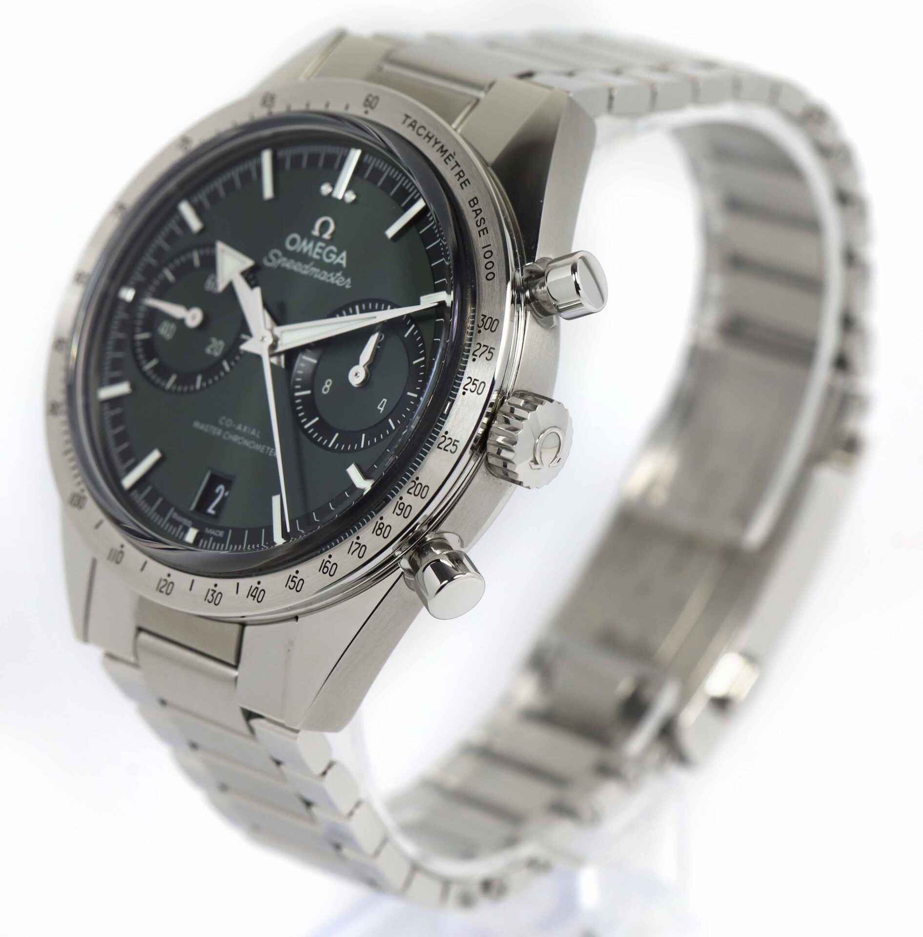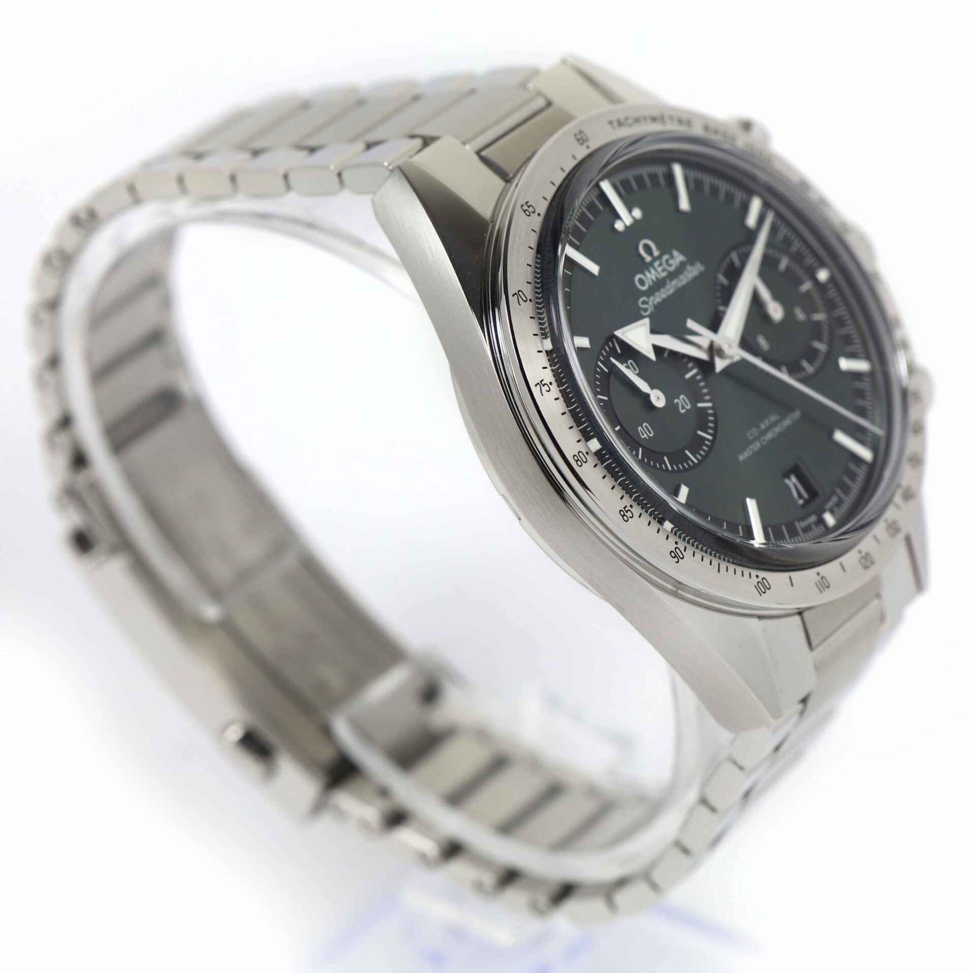 This Omega Speedmaster is in unworn condition and comes with its box, booklets, and warranty cards dated December, 2022. This watch is in stock and available to ship immediately!