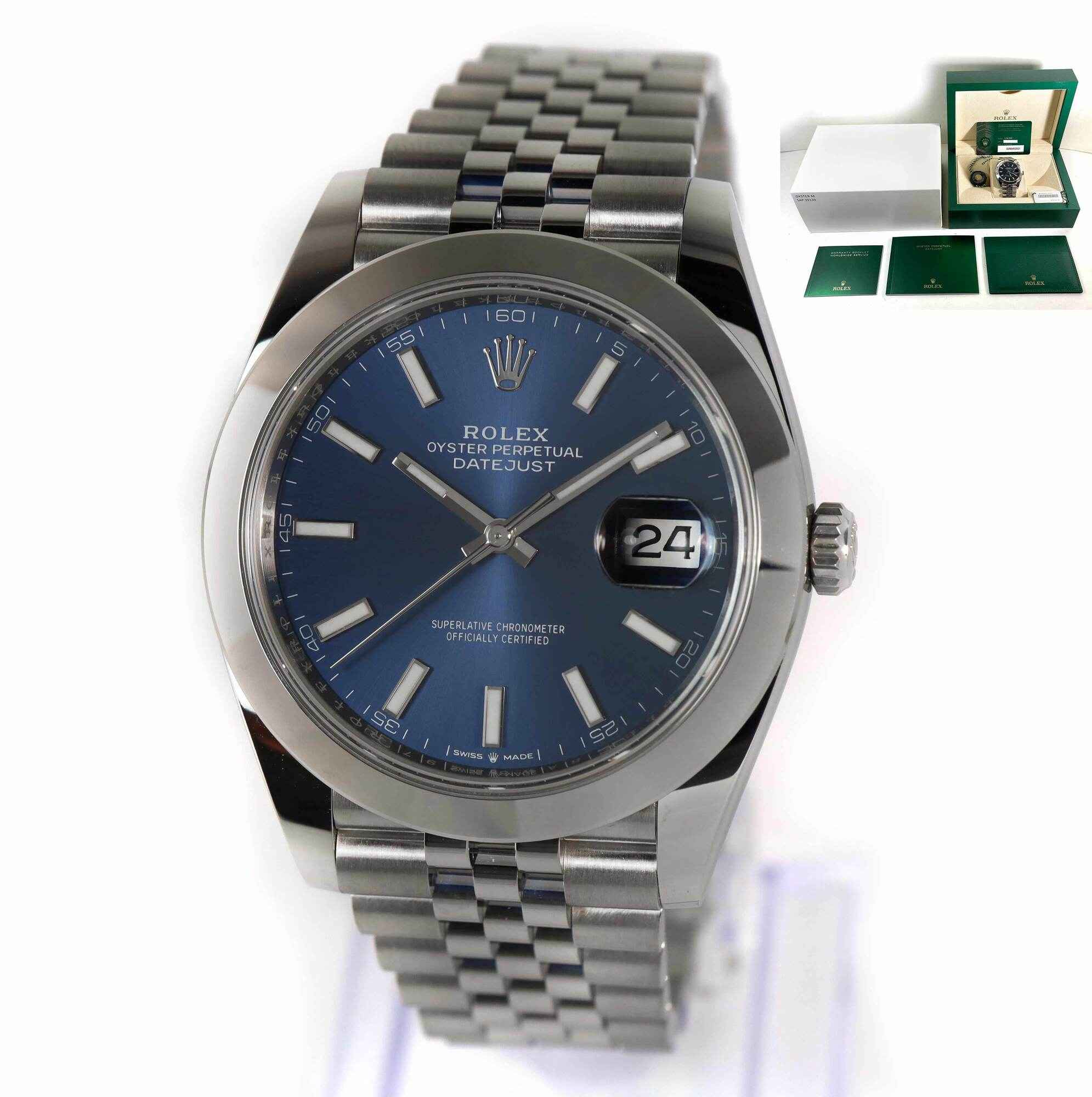 Unworn Rolex Datejust 41 126300 41MM Blue Dial Smooth Jubilee Box Papers