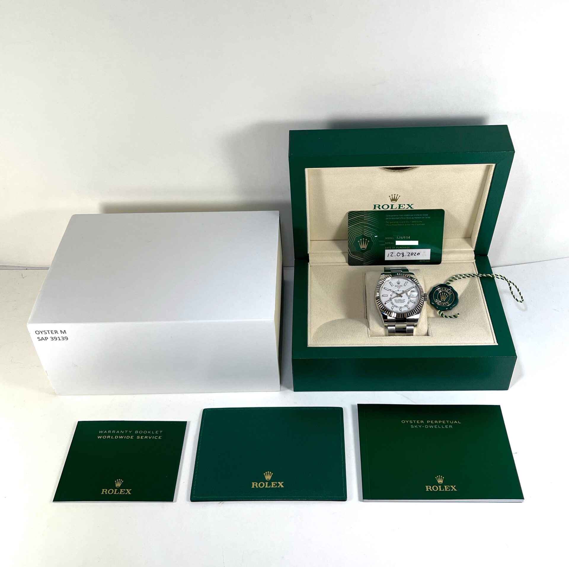 This Rolex is new and comes with box, papers, hang tag, and warranty card dated August 12th, 2020. This watch is in stock and available to ship immediately!