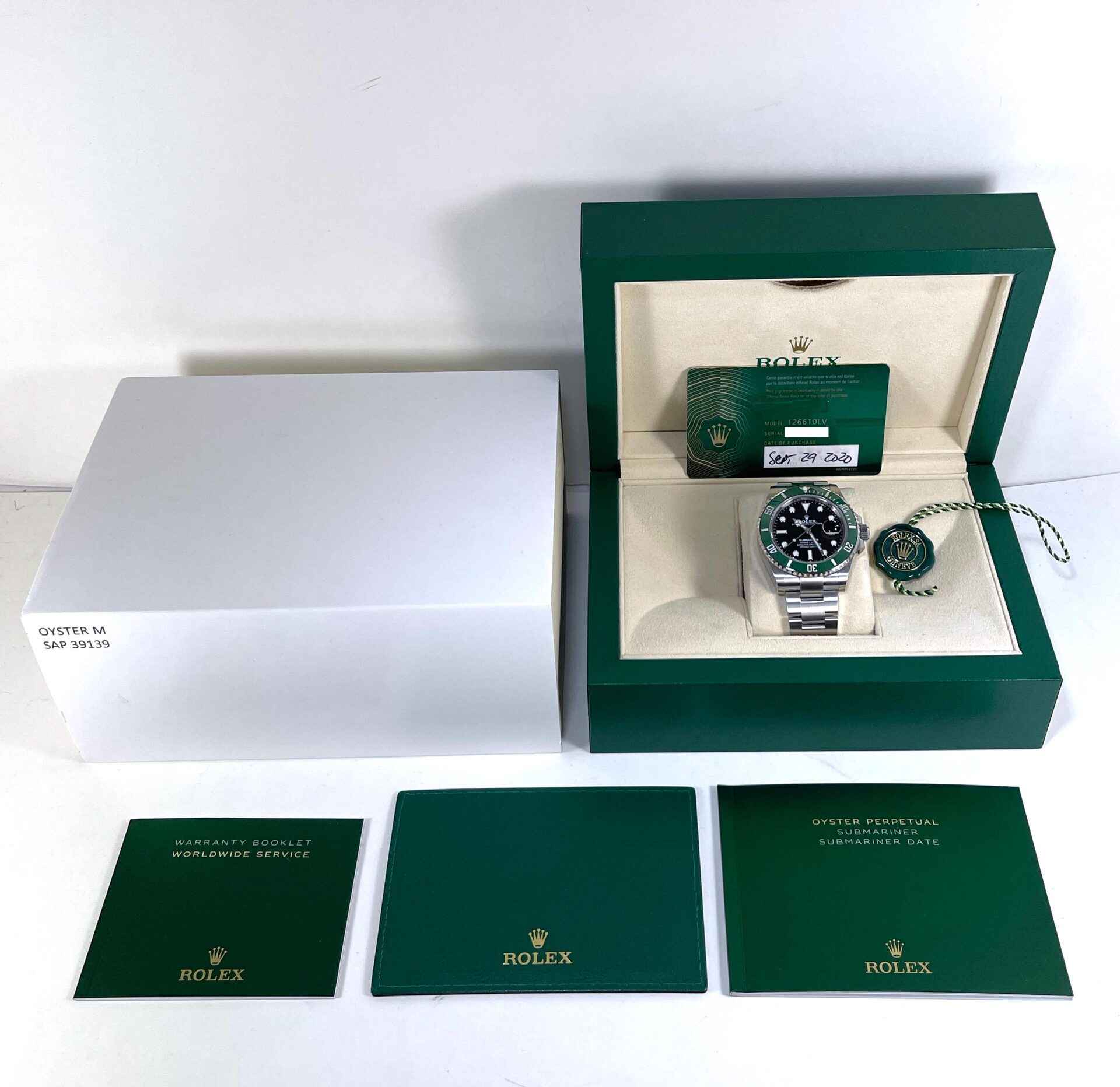 This Rolex Submariner is new with stickers on the case, caseback, and clasp as shown in the photos attached. This watch comes with box, papers, hang tag, and warranty card dated September 29th, 2020. This Rolex is in sto...