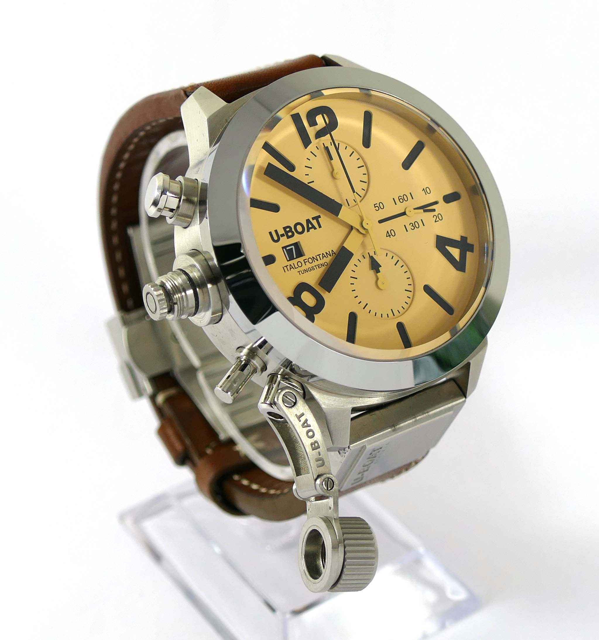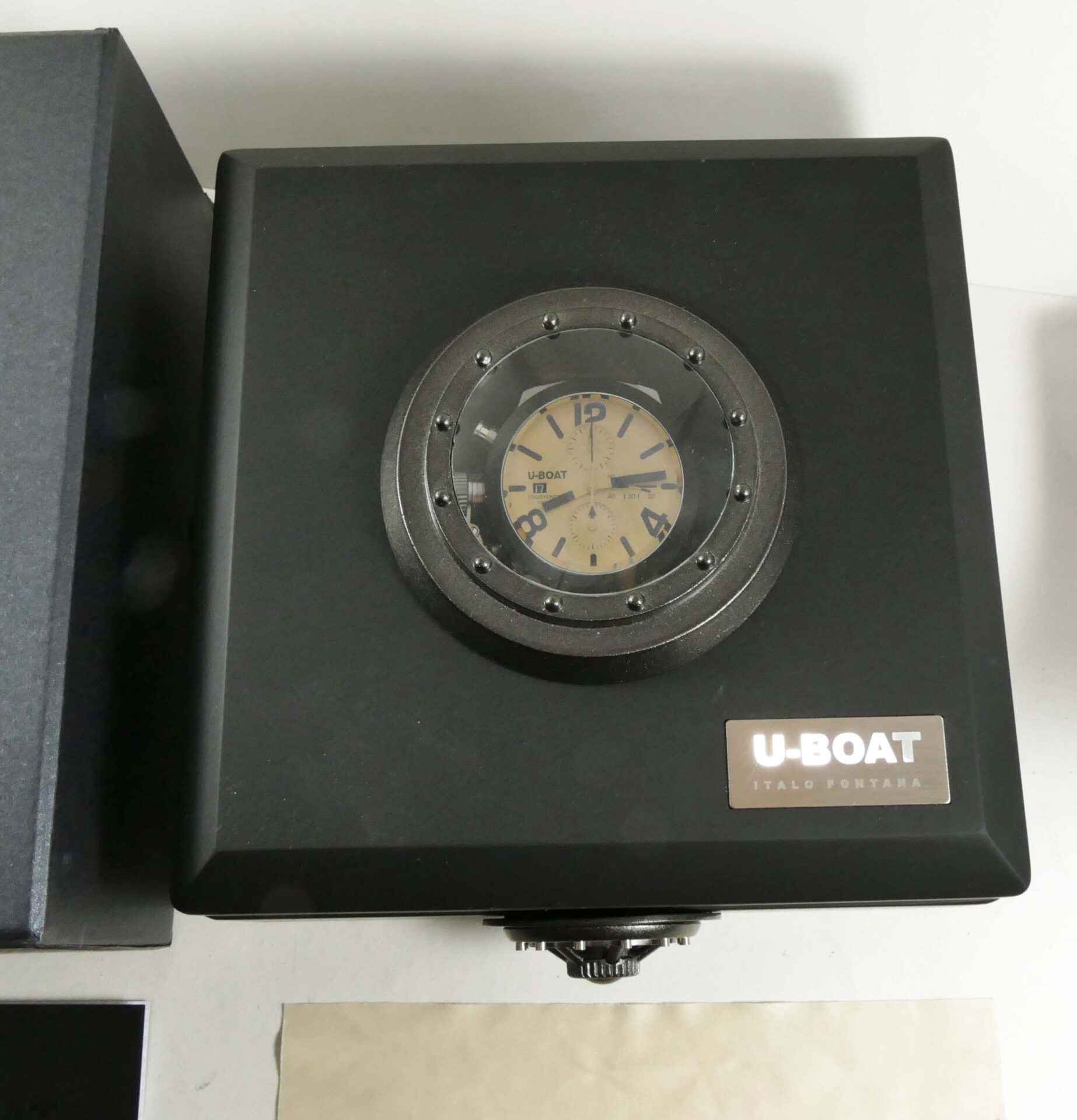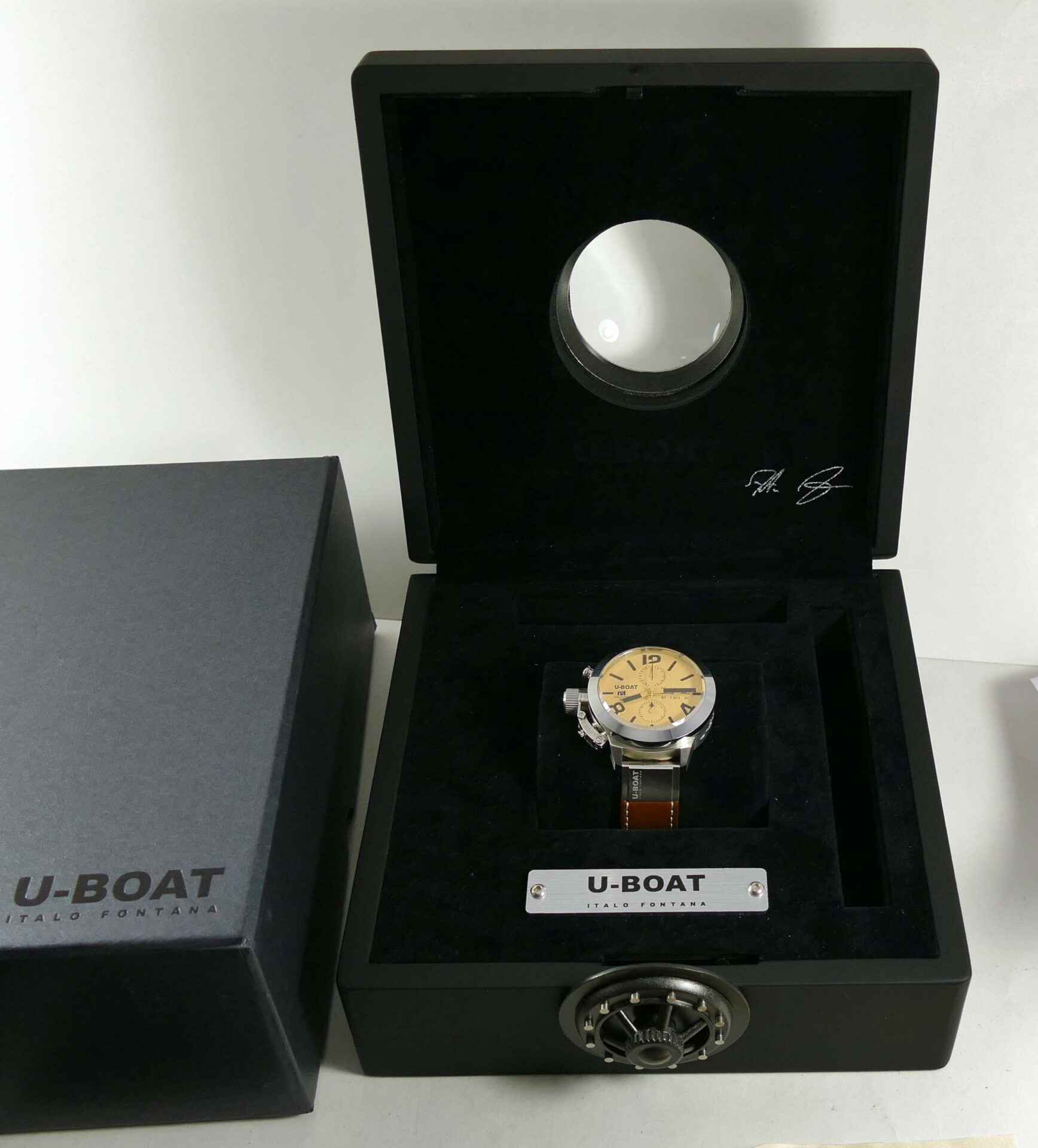 This U-Boat is in unworn condition and comes with its original box, papers, and anything else shown in the photos. The box is amazing, it is very heavy and features a twisting lock mechanism, as well as a magnifier from ...