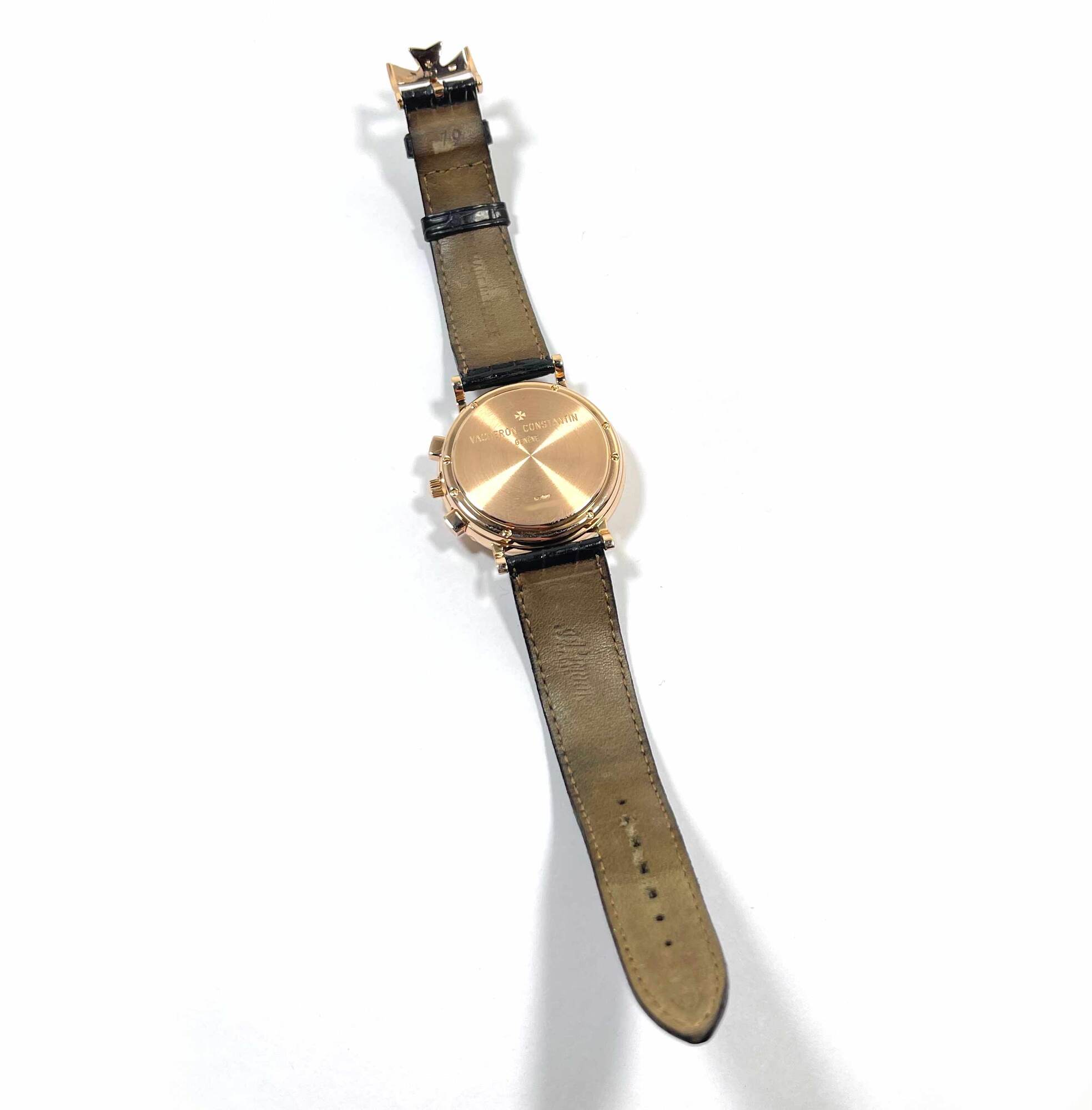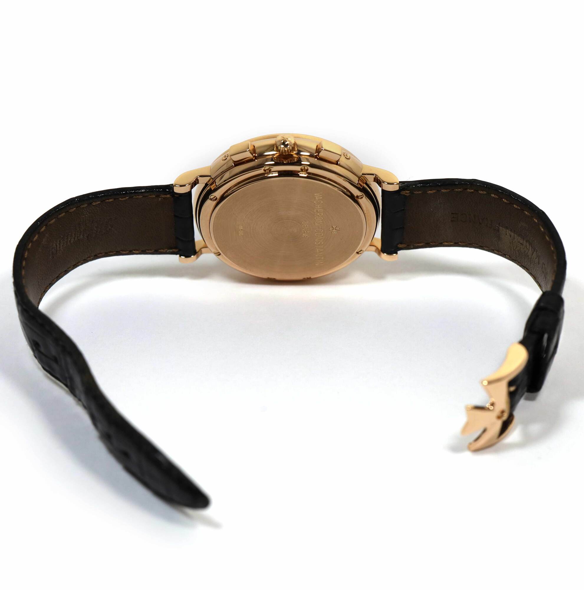 THIS VACHERON CONSTANTIN IS IN EXCELLENT CONDITION AND COMES WITH ITS BOX, SERVICE PAPERS, AND WARRANTY CARD DATED AUGUST 1ST, 1994 AS SHOWN IN THE PICTURES ATTACHED. THIS WATCH WAS COMPLETELY SERVICED BY VACHERON CONSTANTIN IN FEBRUARY, 2024. THE BLACK LEA...