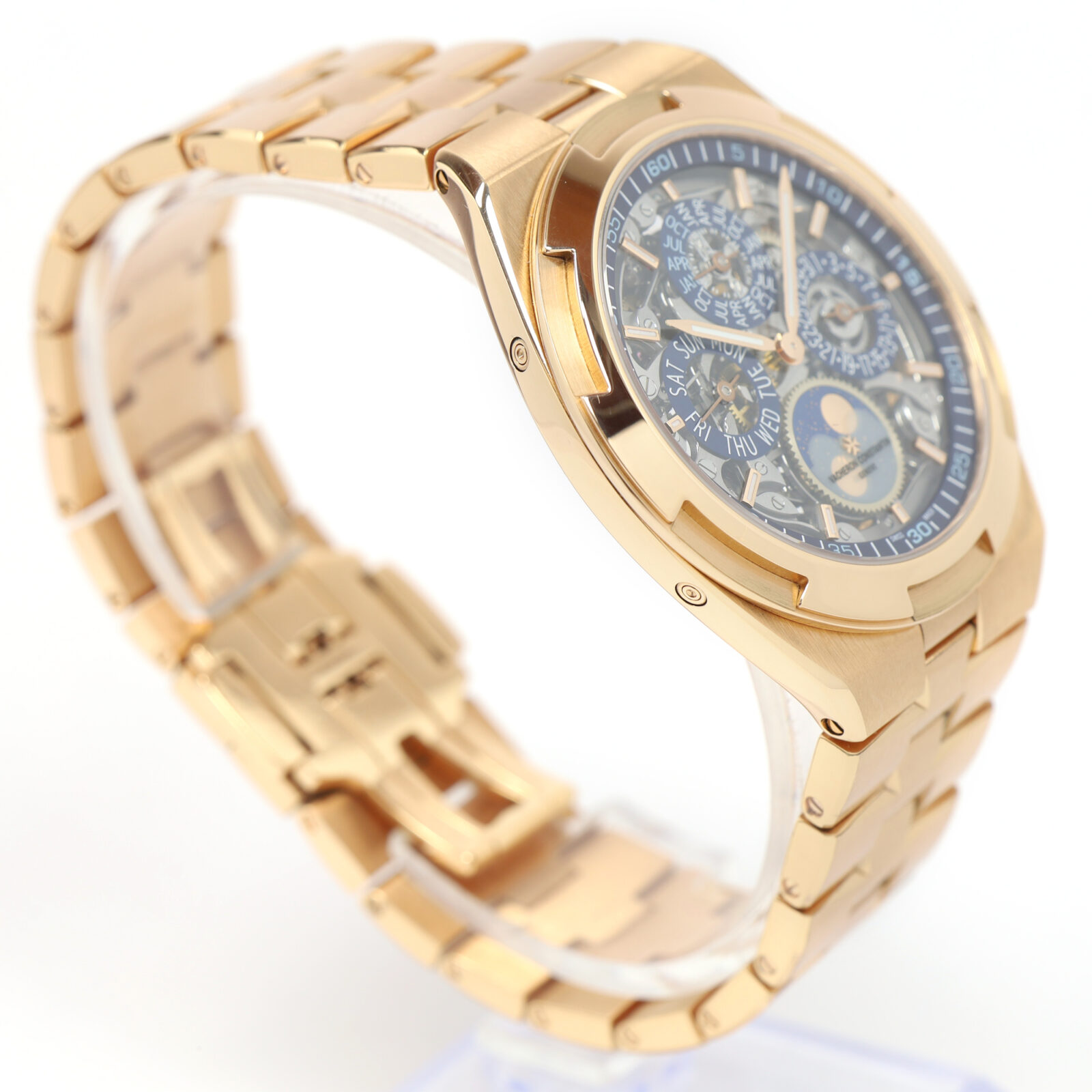 this vacheron constantin watch is in amazing overall condition and comes with its box, booklets, vacheron tool, two additional blue straps, vacheron watch winder, and warranty card dated may 28th, 2023 as shown in the pictures attached. This watch is in stock and available to ship immediately!