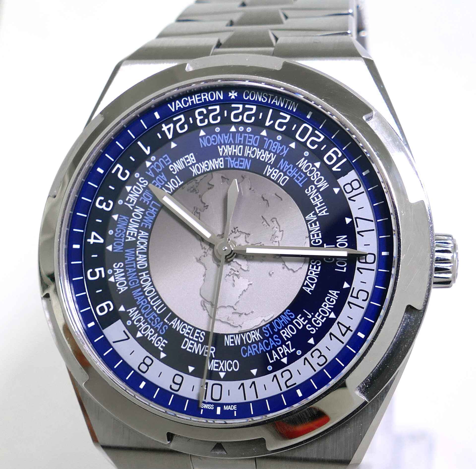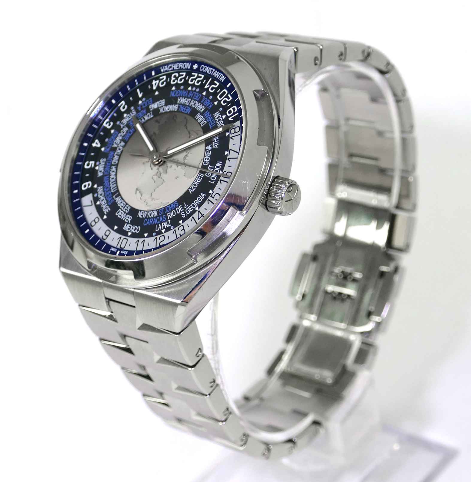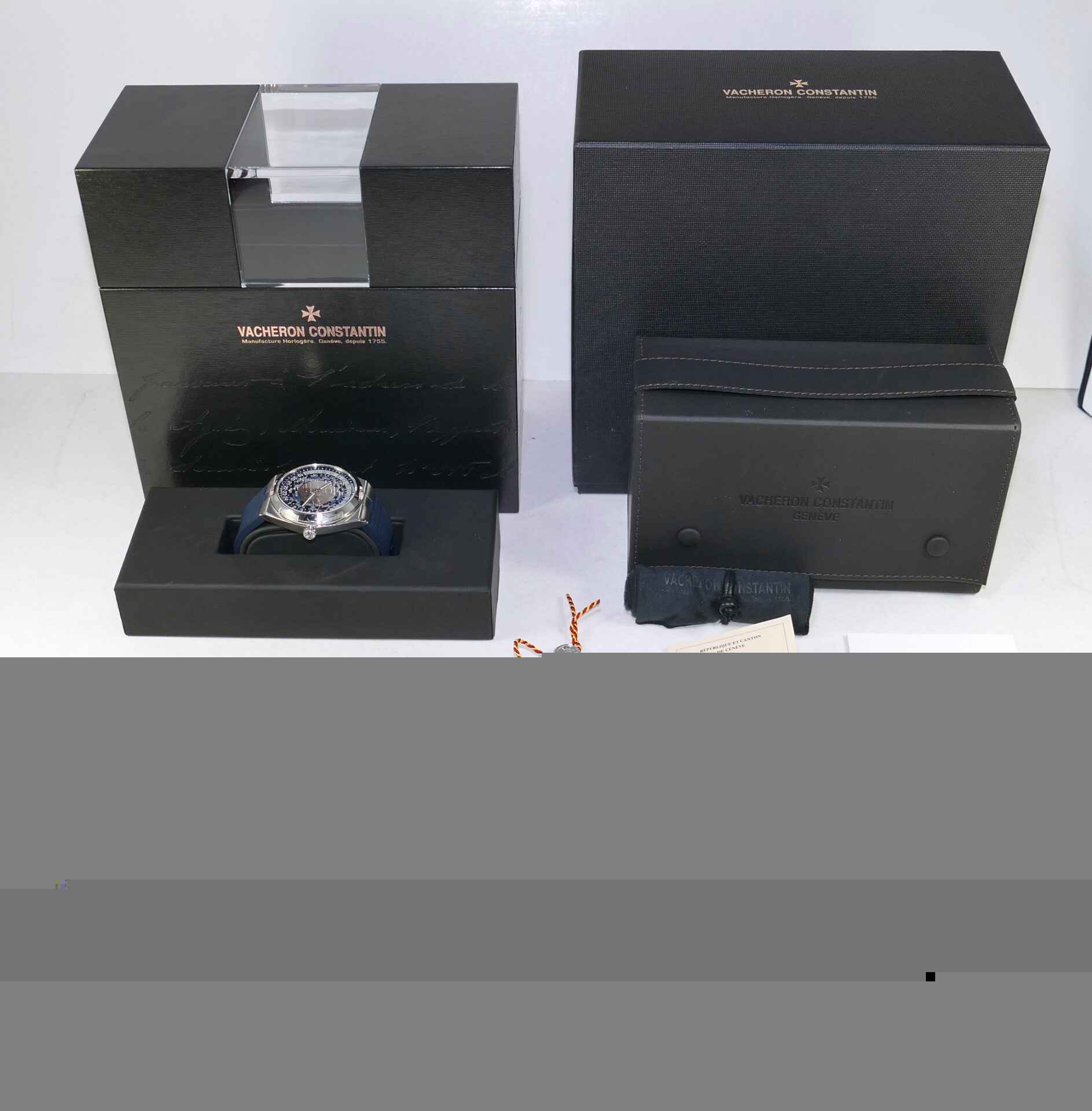 Read Morethis vacheron watch is in excellent condition and comes with all of its original boxes, paperwork, extra straps, and anything else shown in the photos. It comes with the stainless steel bracelet, leather strap, rubber strap, and deployant buckle. All are in very nice, lightly worn condition.