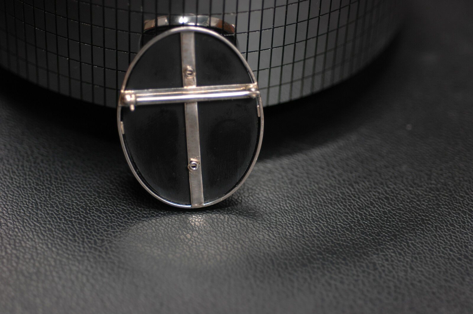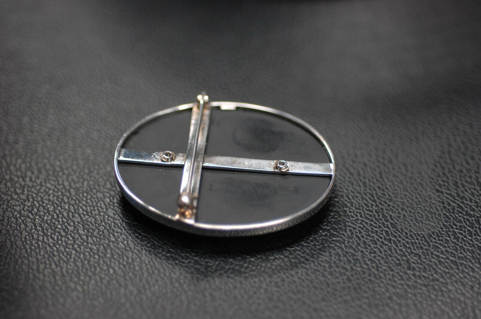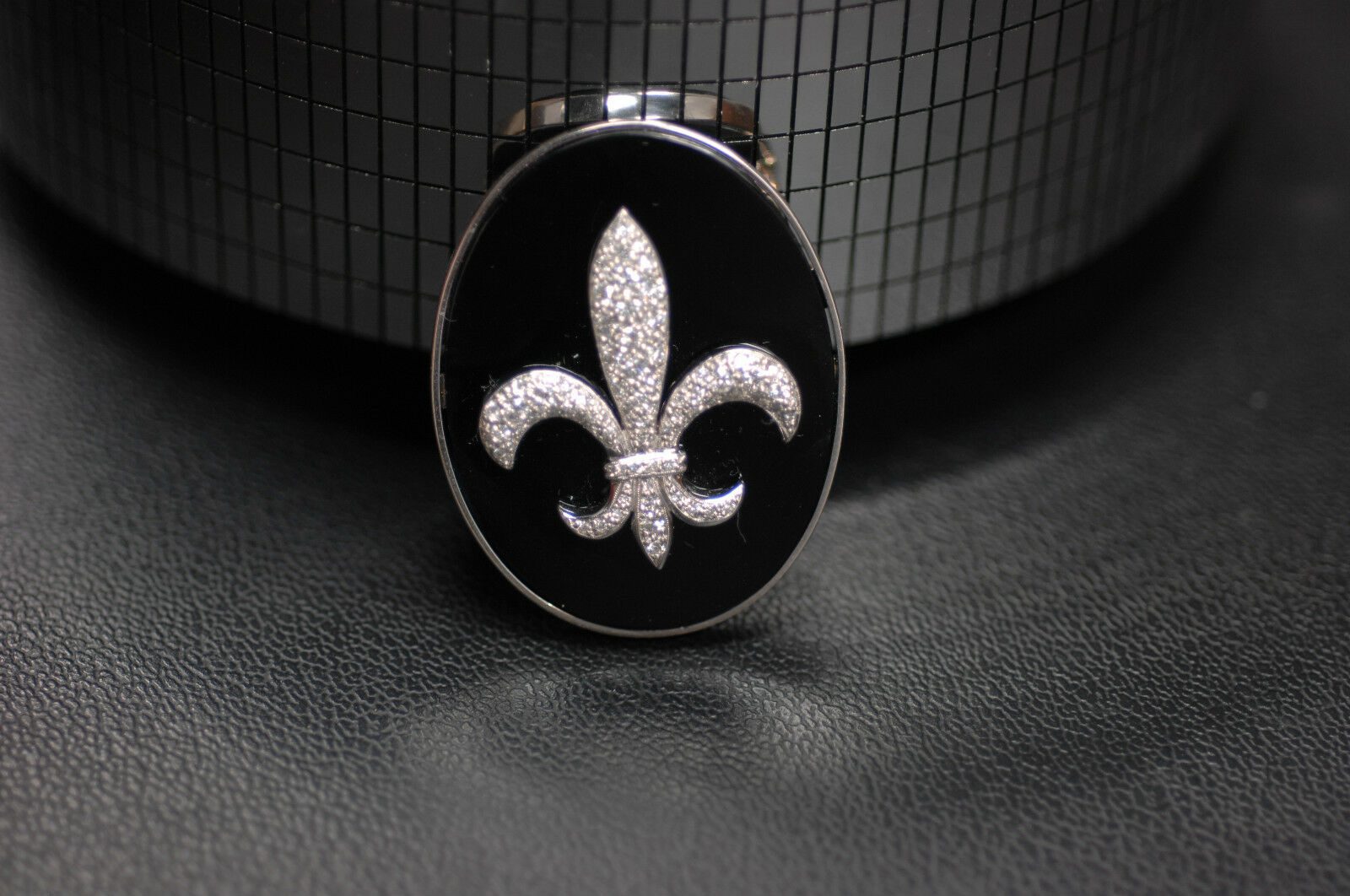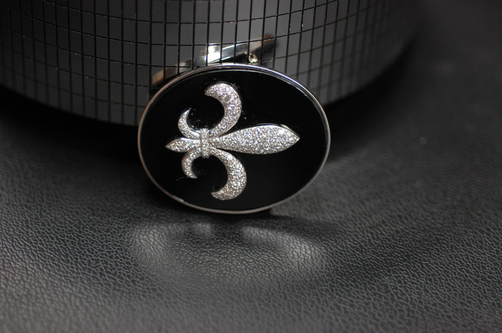 vintage 14k white gold 1.50ct diamond fleur de lis pin / pendant on onyx