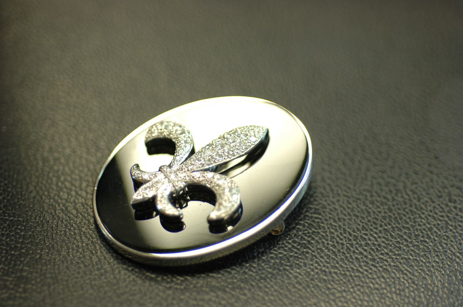 you are viewing natural diamond 1.50cts total 14k white gold fleur de lis pin or pendant.