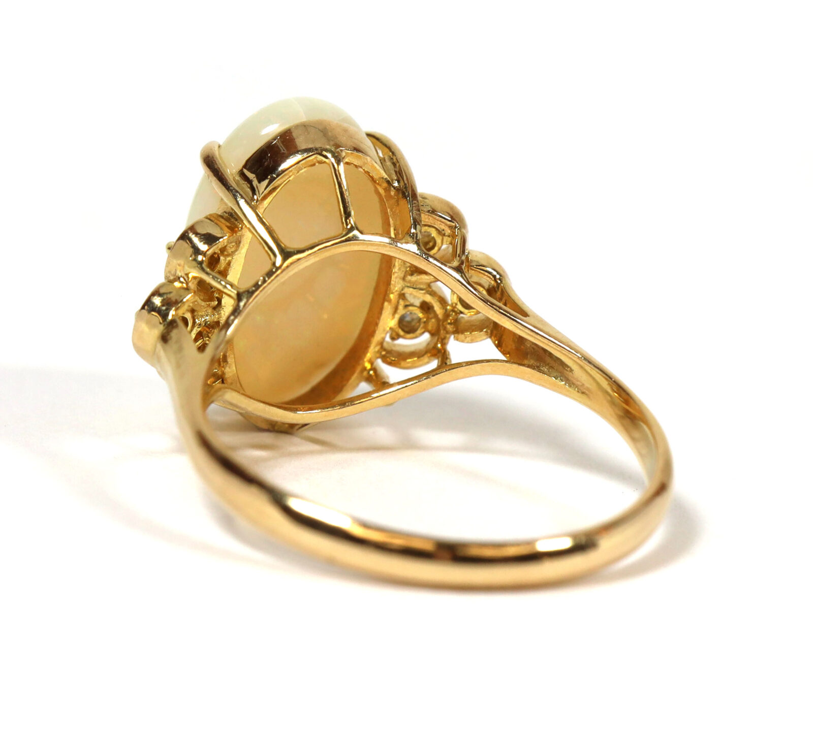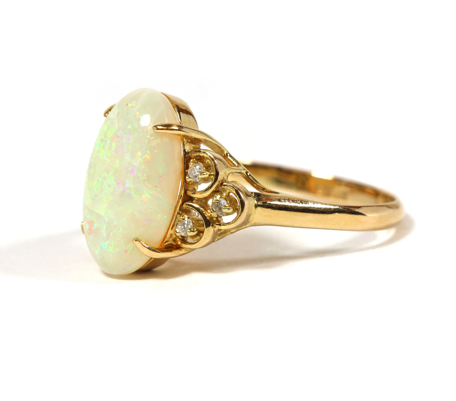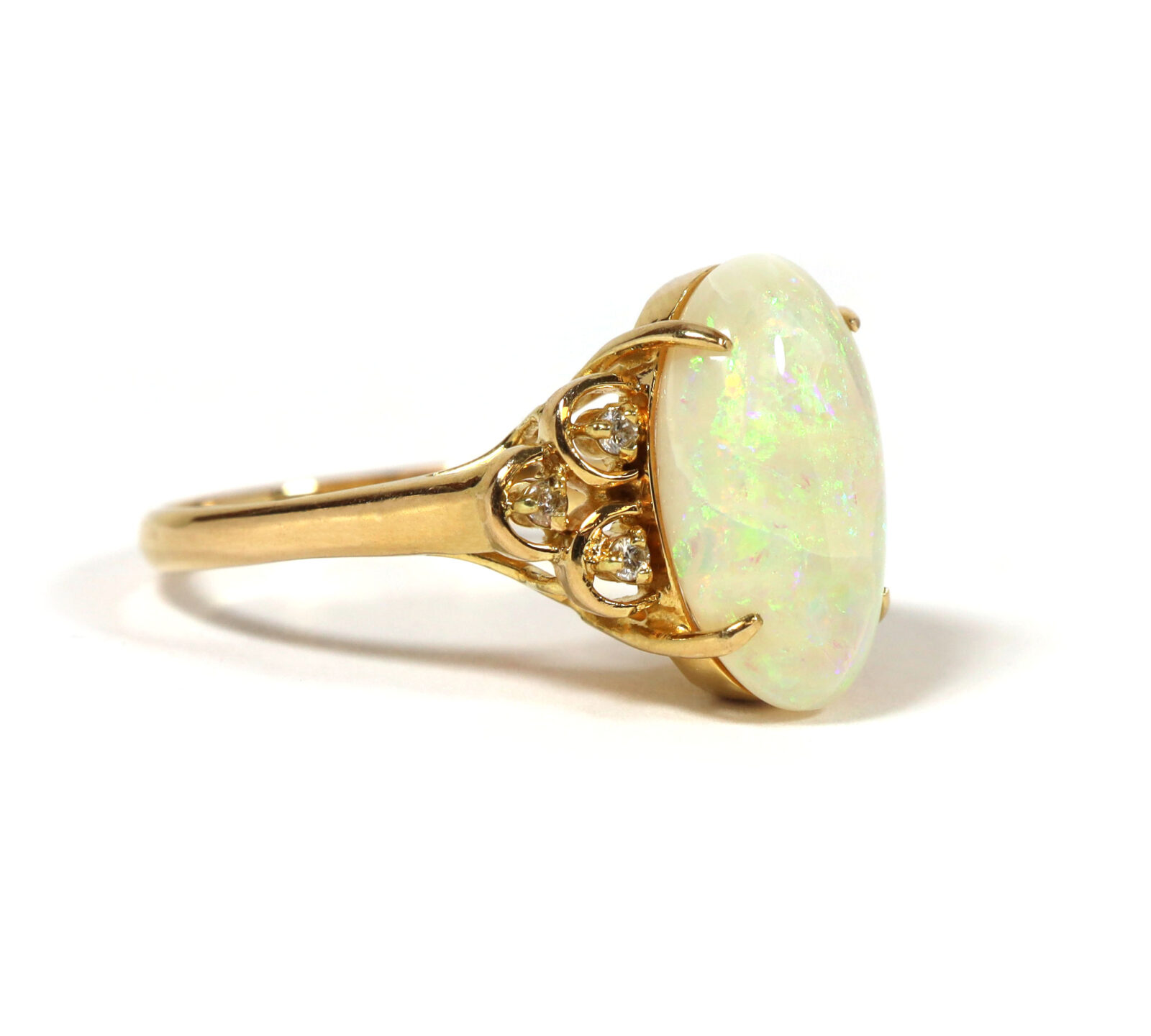 White Oval Opal And Diamond 14K Yellow Gold Statement Ring