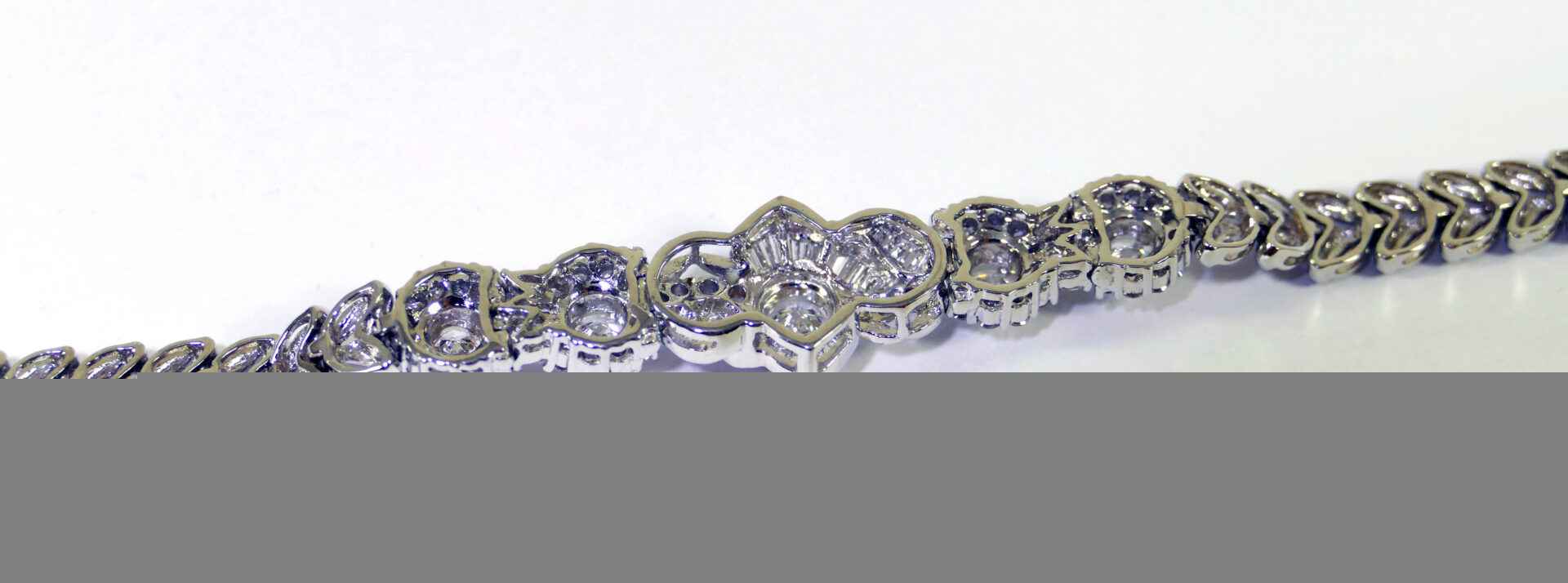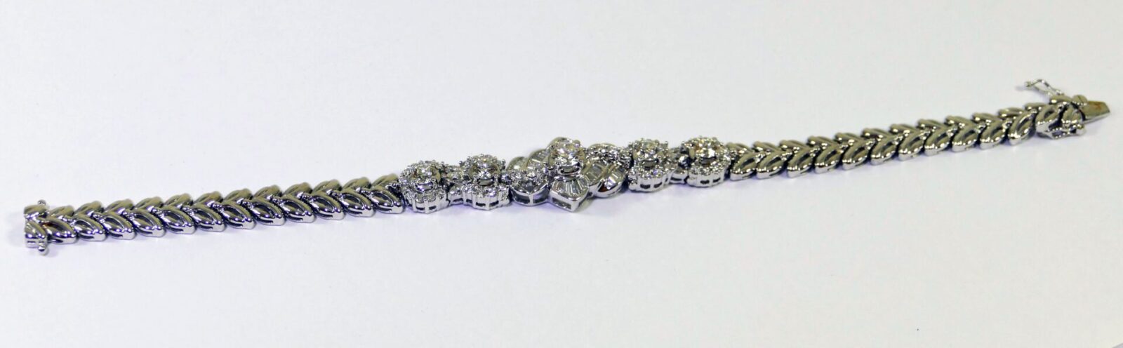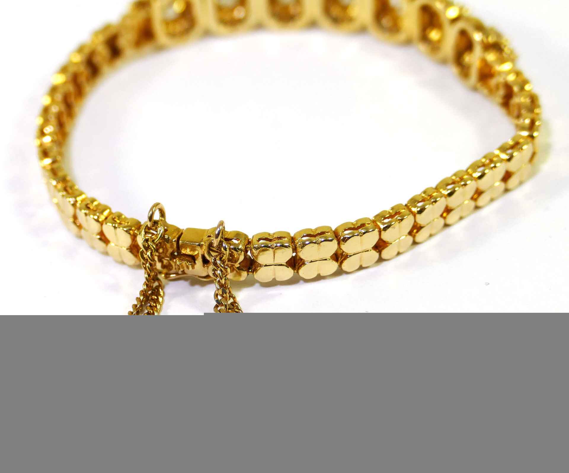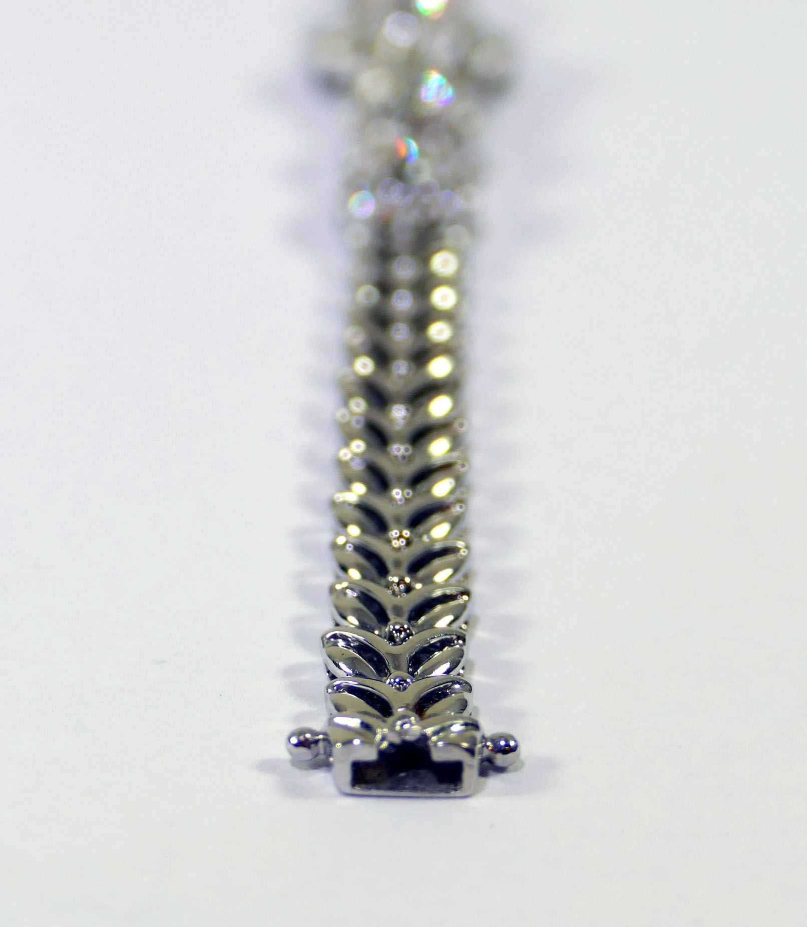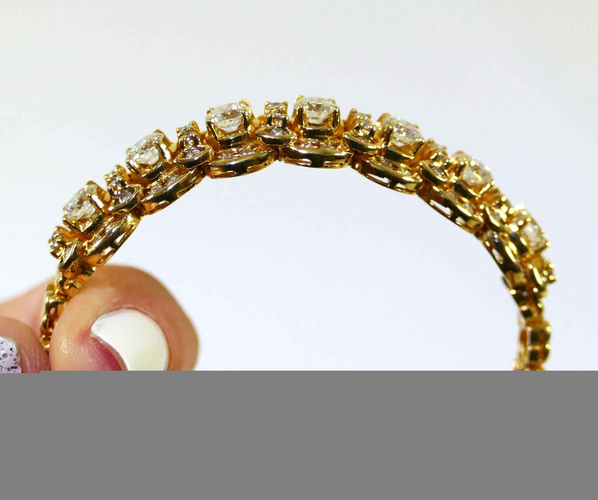 this bracelet is crafted in beautiful 18k gold and lays 2.5 carats of diamonds. There are lock & key charms on the back of the bracelet where the two ends meet.