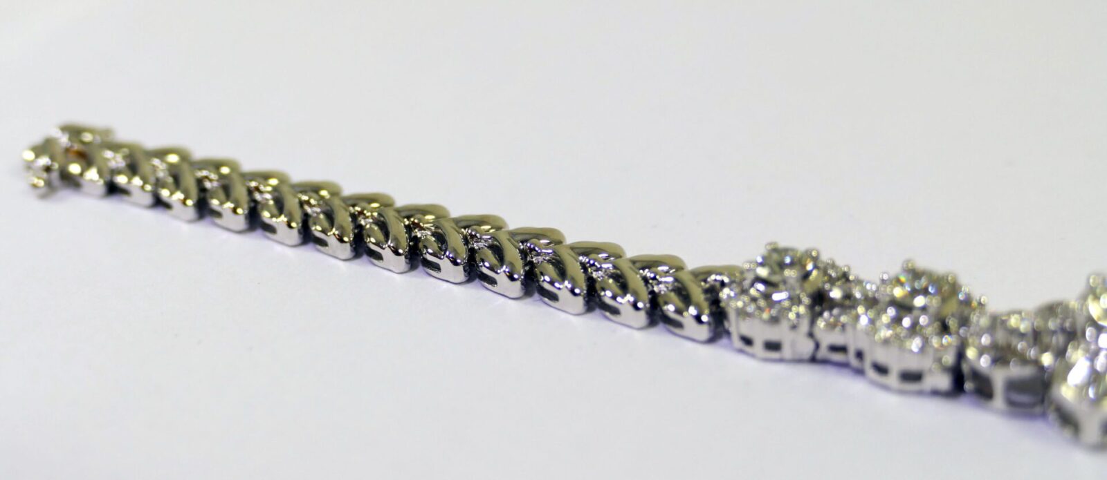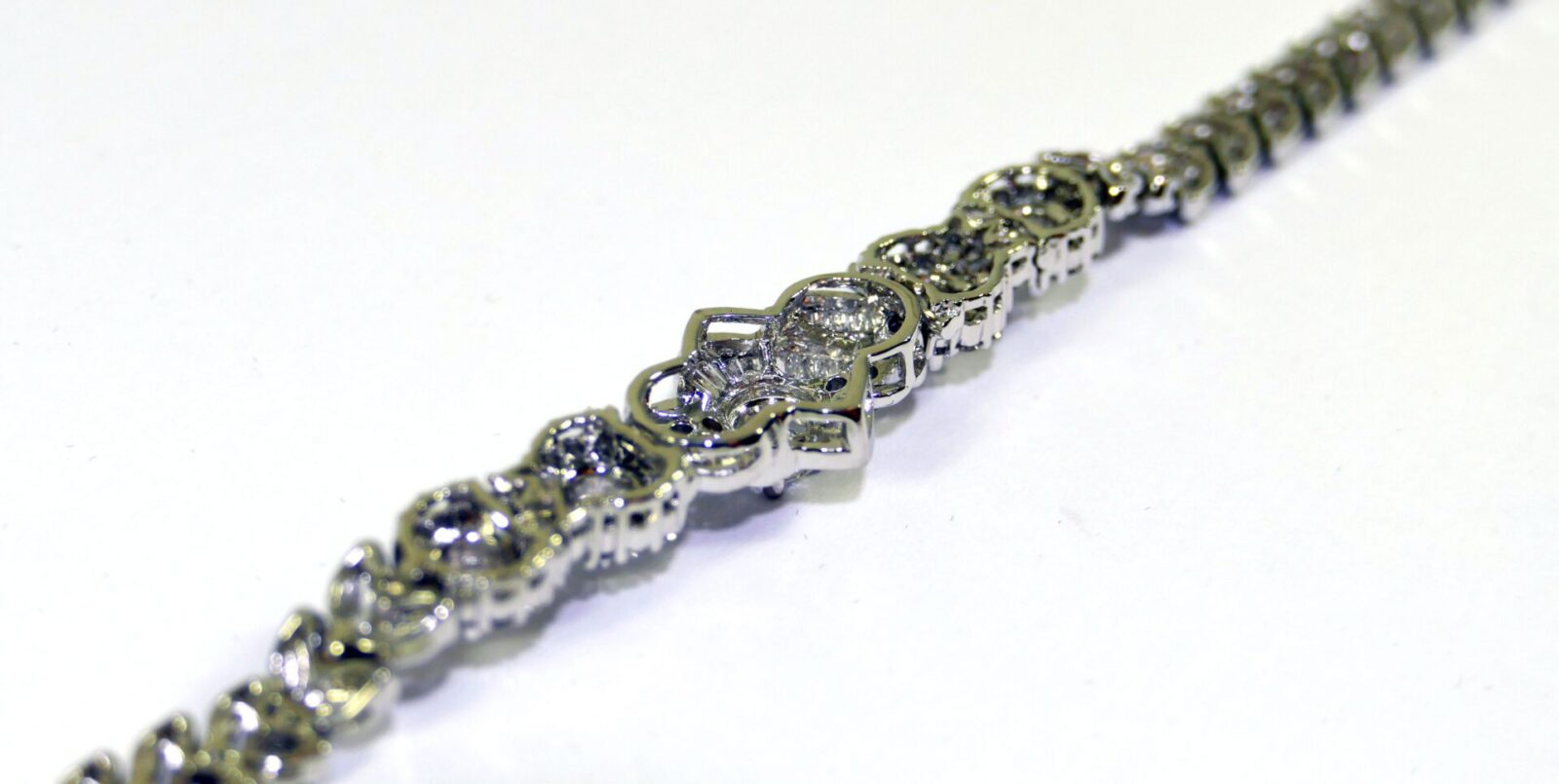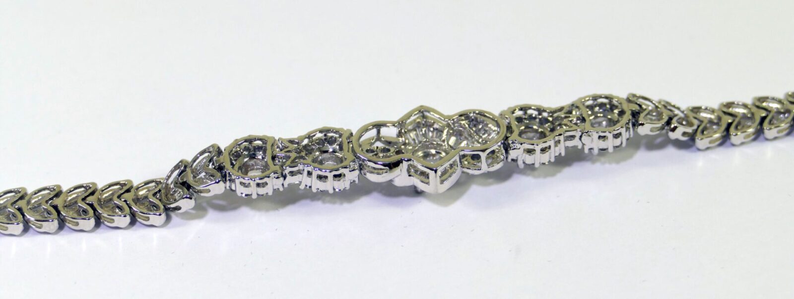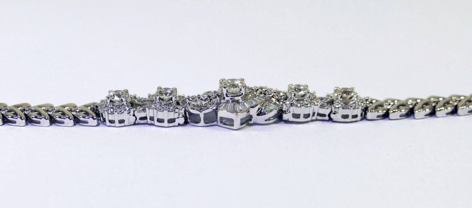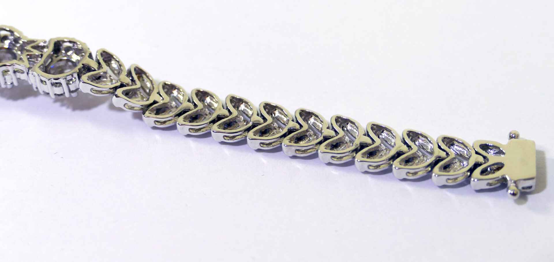 this bracelet is crafted in beautiful 18k gold and lays 2.5 carats of diamonds. There are lock & key charms on the back of the bracelet where the two ends meet.
