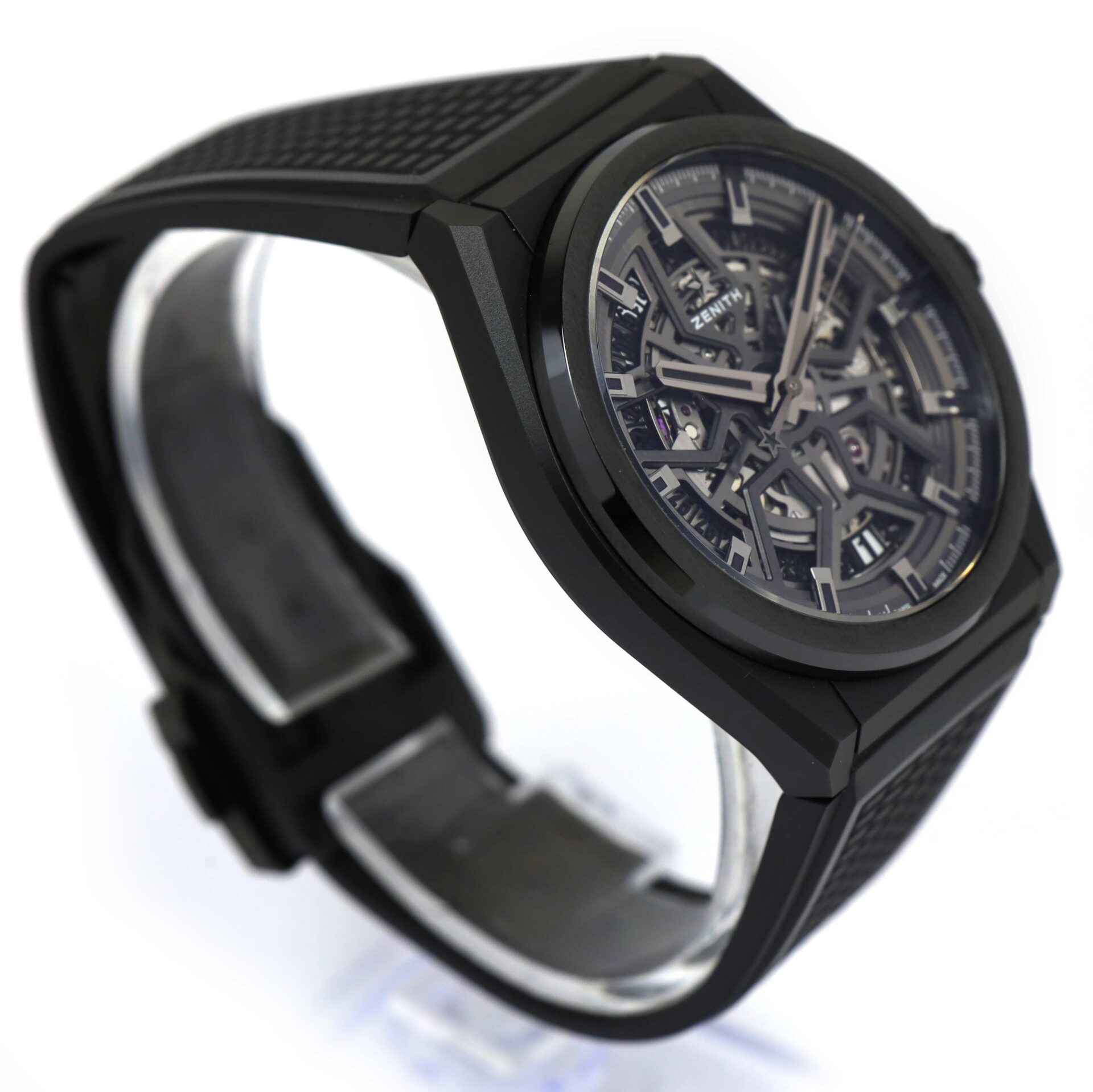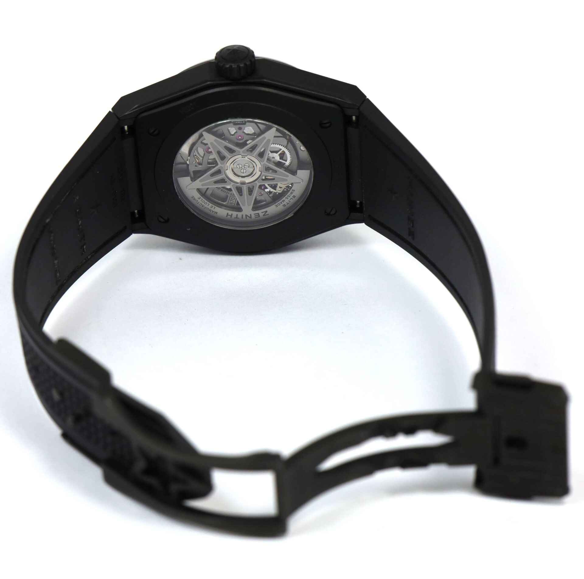 this zenith is in super condition and comes with its box, booklets, and zenith wallet as shown in the photos attached. This watch is in stock and available to ship immediately!