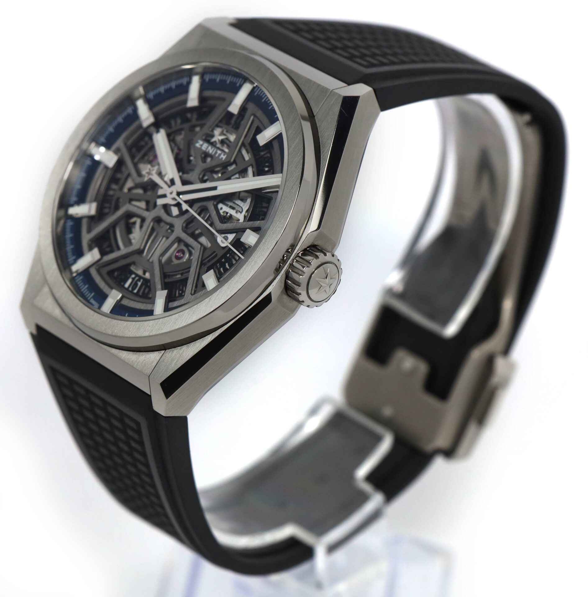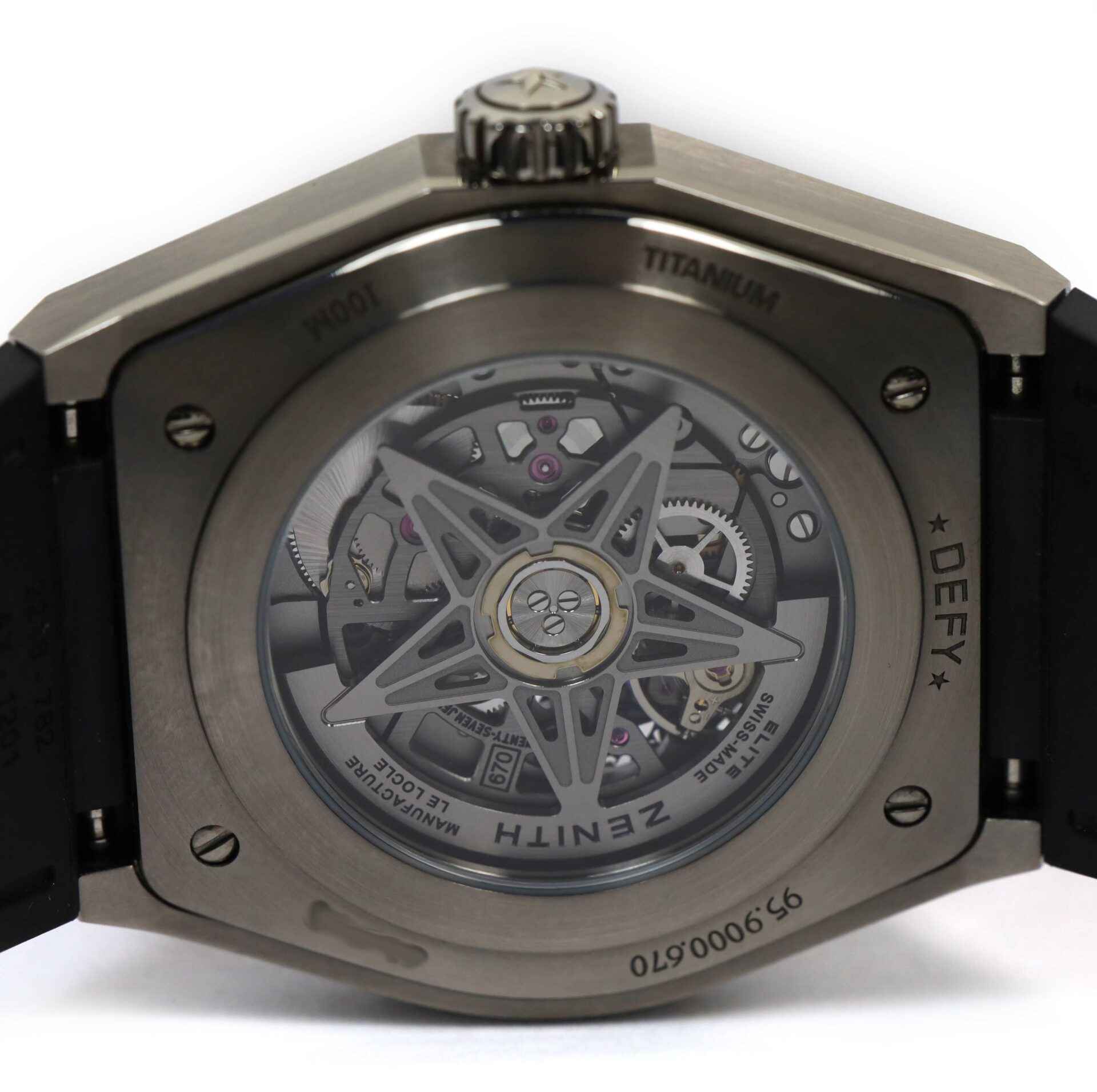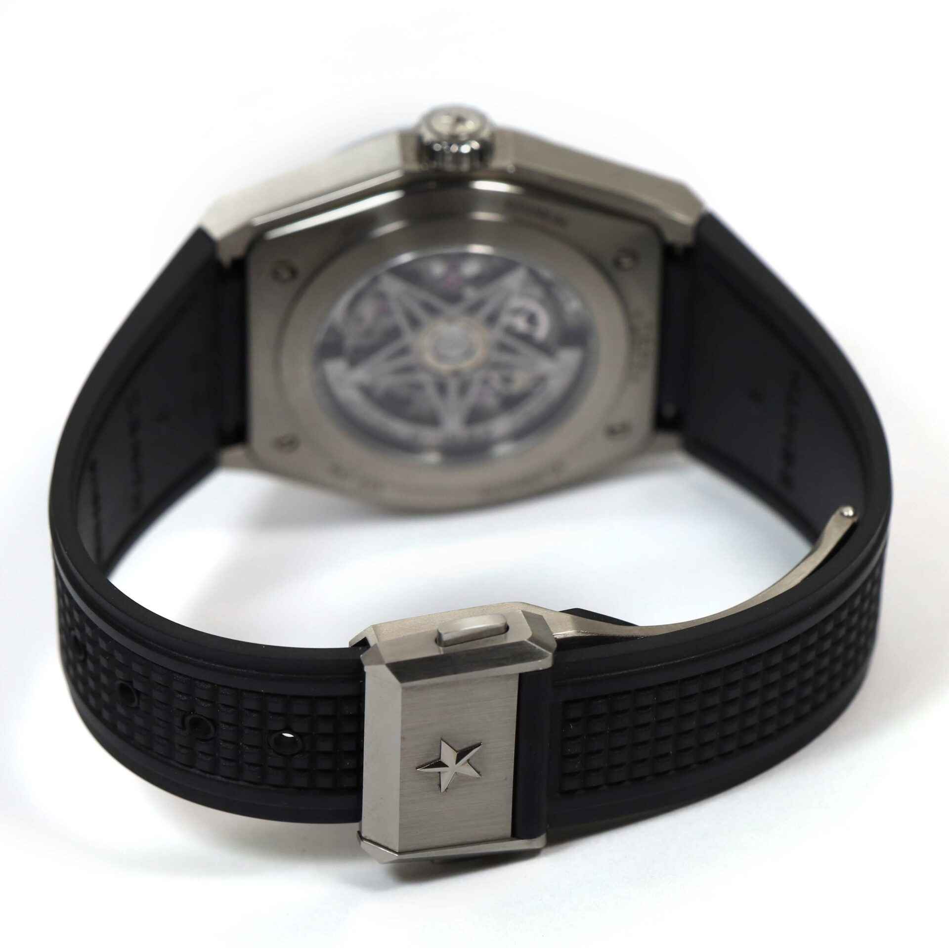 This Zenith is in super condition and comes with its box, booklets, and hang tag only as shown in the photos attached. This watch features a 41mm titanium case that surrounds a skeleton dial and comes on a black rubber s...